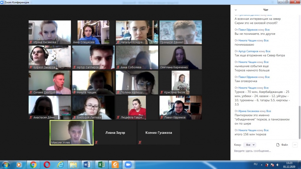 Ребята активно использовали чат, все участники диалога смогли получить ответы на интересующие их вопросы. В дискуссии приняли участие студенты 3 курса СГФ, слушателями были студенты 1 курса СГФ и ФЕМИ. Модератор дискуссии – А. М. Олешкова.