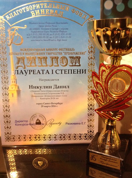 Поздравляем Данила Никулина, студента третьего курса отделения сценических искусств (профиль «Музыкально-театральное искусство») с победой в Международном конкурсе-фестивале детского и юношеского творчества «Преображение» (г. Санкт-Петербург)!
