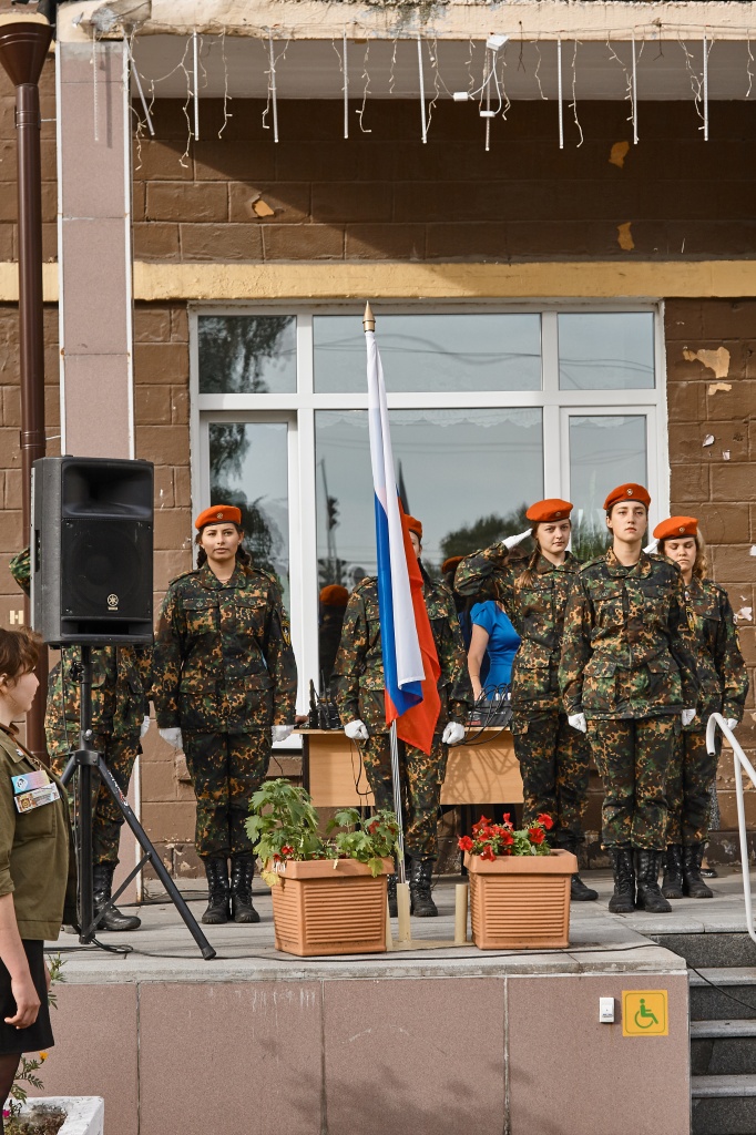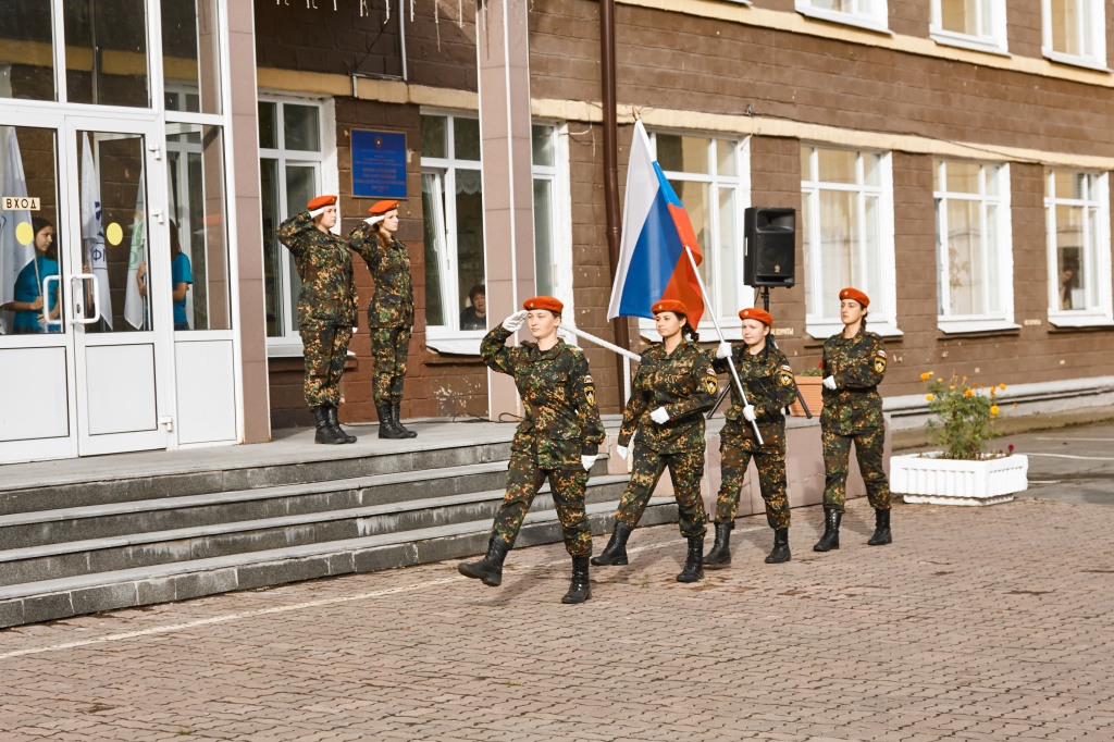 Утро праздничного дня было наполнено солнечными лучами и замечательным настроением всех тех, кто с нетерпением ждал начала нового учебного года. Торжественная линейка по традиции началась с гимна, под который юнармейский отряд НТГСПИ, созданный в 2014 году, внес флаг Российской Федерации, За столь короткое время девушки заняли 1 место на военно-спортивных играх Горнозаводского управленческого округа Свердловской области, посвященных маршалу Советского Союза Георгию Константиновичу Жукову. Завоевали 1 место в городском конкурсе в номинации «Отчизна», 1 место в районной «Операции “Подвиг”».
