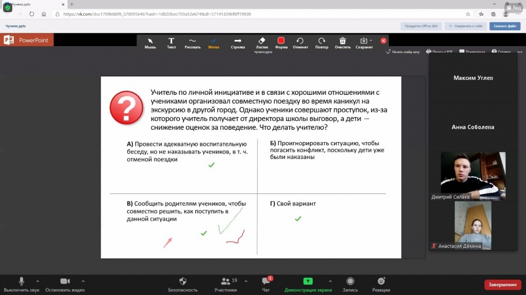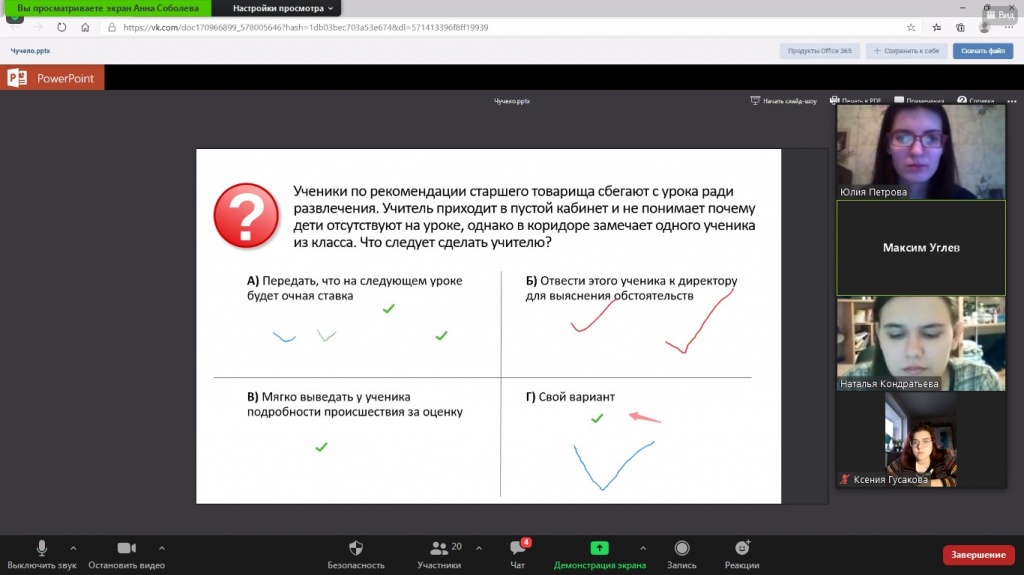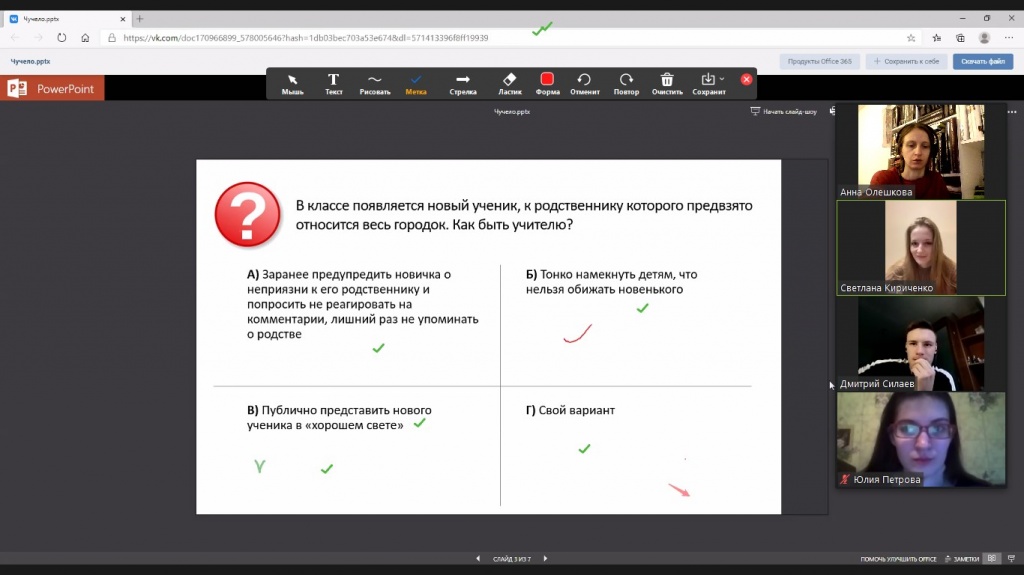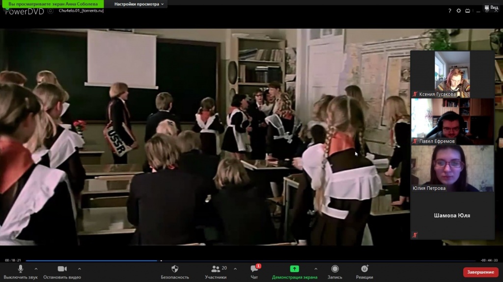 На онлайн-заседании кружка студенты обсудили пять педагогических ситуаций, основанных на сюжете фильма.