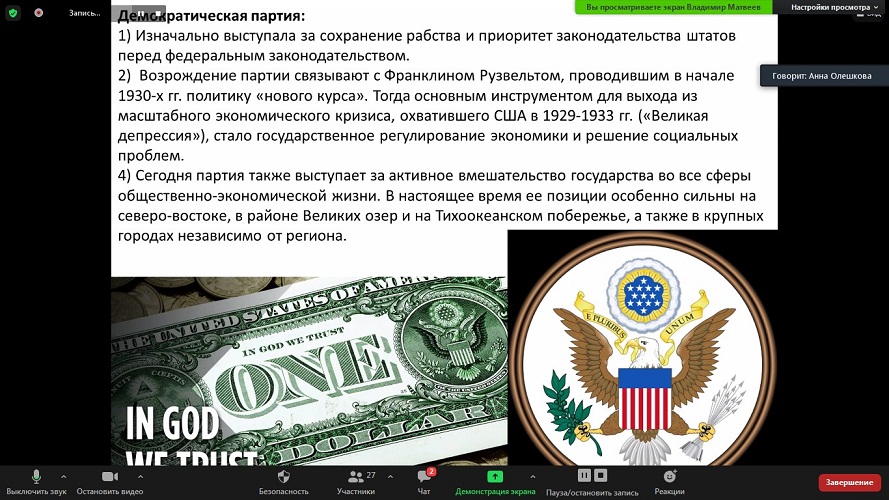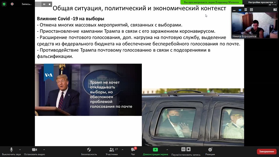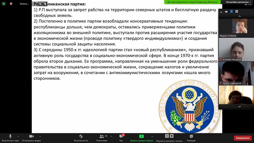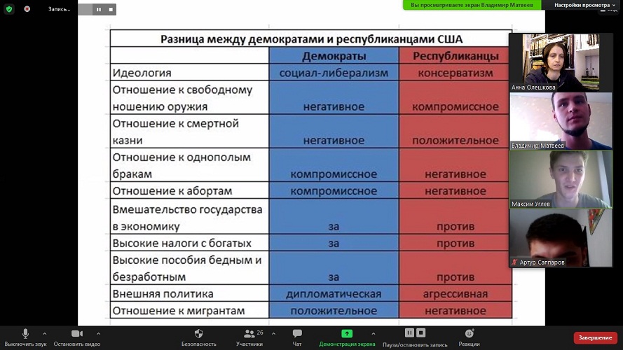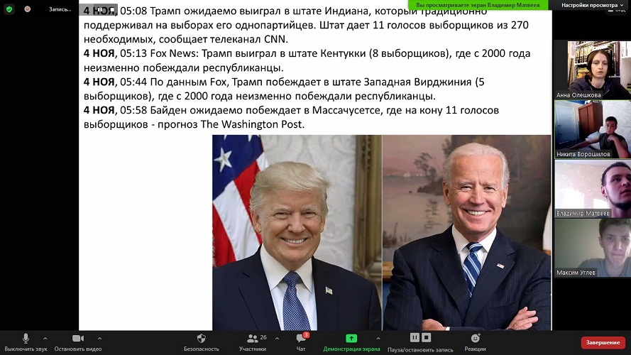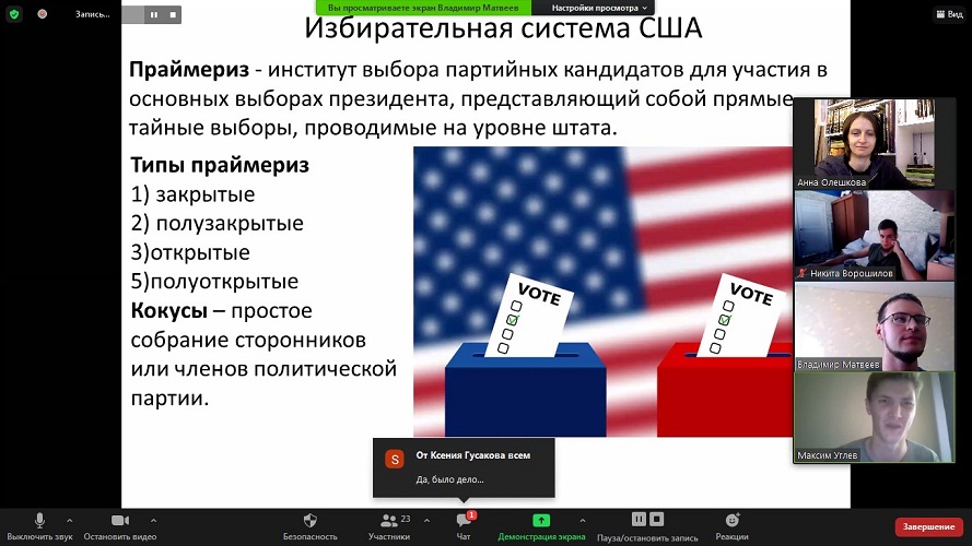 В рамках работы дискуссионного клуба «Pro et Contra» прошло занятие, посвященное специфике президентской кампании в США.