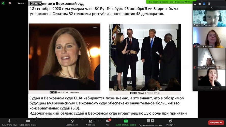 В заключение участниками дискуссии было отмечено, что эксперты не прогнозируют скорого объявления победителя президентских выборов в США. Формально президент будет избран 14 декабря на заседании коллегии выборщиков, сформированной по итогам всенародного голосования. Инаугурация нового президента запланирована на 20 января 2021 г.