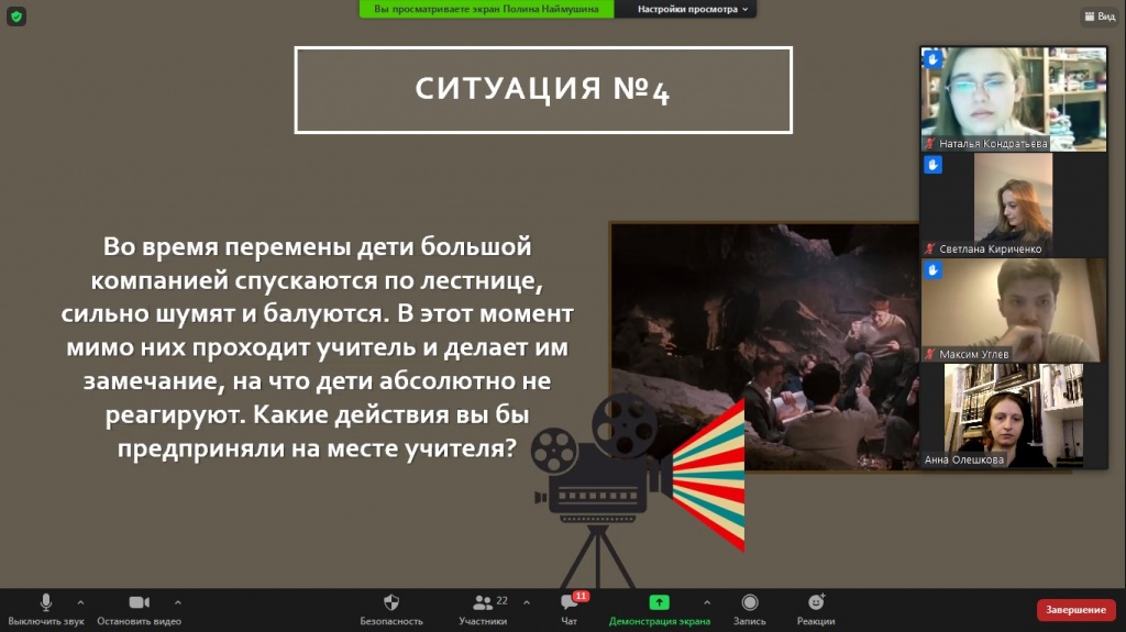 В ходе дискуссии были рассмотрены педагогические ситуации, связанные с провокативным поведением обучающихся, конкуренцией педагогических стилей, а также расхождением позиций учителей и родителей о методах воспитания подрастающего поколения.