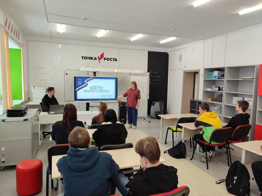 Старшеклассникам рассказали про наш институт – Нижнетагильский государственный социально-педагогический институт (филиал) федерального государственного автономного образовательного учреждения высшего образования «Уральский государственный педагогический университет»; уникальные преимущества педагогической профессии; современные специальности (IT в образовании, математика, экология, информатика); практику в школах уже со 2-го курса; бюджетные места и социальные гарантии для педагогов; карьерные перспективы в Нижнем Тагиле и Свердловской области.