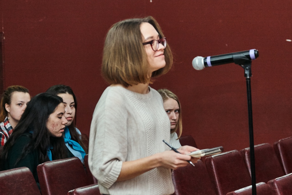 На встрече присутствовали ветераны войны Николай Александрович Спиридонов и Виталий Анатольевич Кузнецов. В ходе беседы ветераны вспомнили забавные случаи из военной жизни, рассказали о быте военнослужащих в военное время, с теплом вспоминали своих товарищей, а также поговорили с залом на тему патриотизма и рассказали о том, как проводят патриотическое воспитание в городе и области.