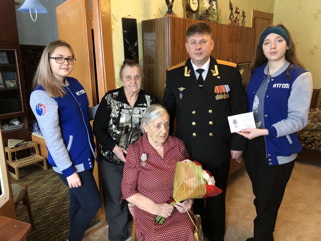 28 февраля активисты студенческого объединения «Pro_патриот» Центра развития молодежных инициатив Лиана Зауэр, Виктория Лаптева (СГФ), директор ЦРМИ С. Ю. Намятов совместно с Администрацией г. Нижний Тагил приняли участие во вручении памятной медали «75 лет Победы в Великой Отечественной войне» труженице тыла Людмиле Ивановне Бринк.
