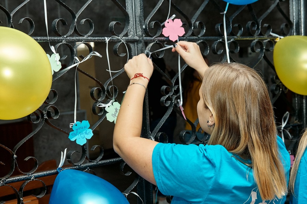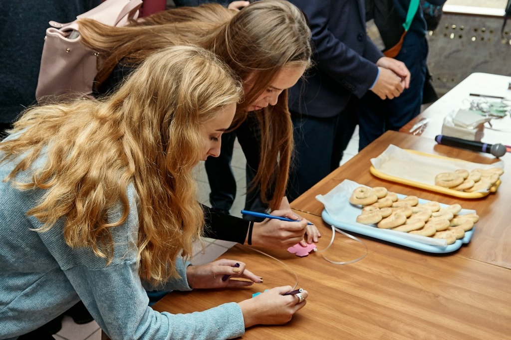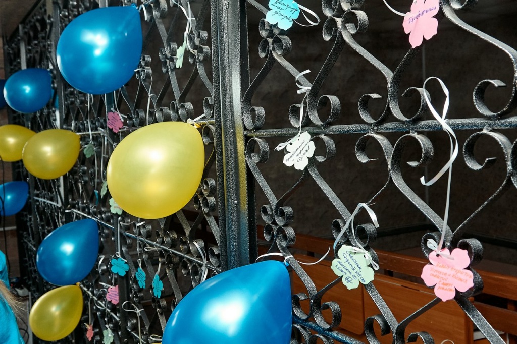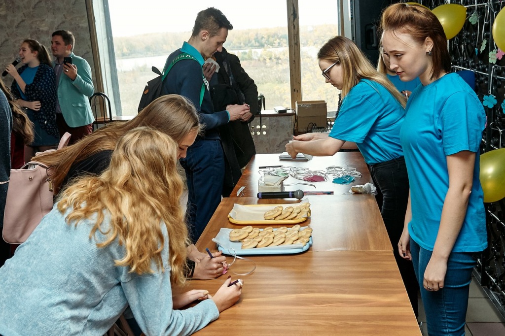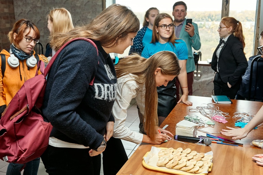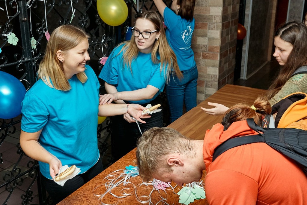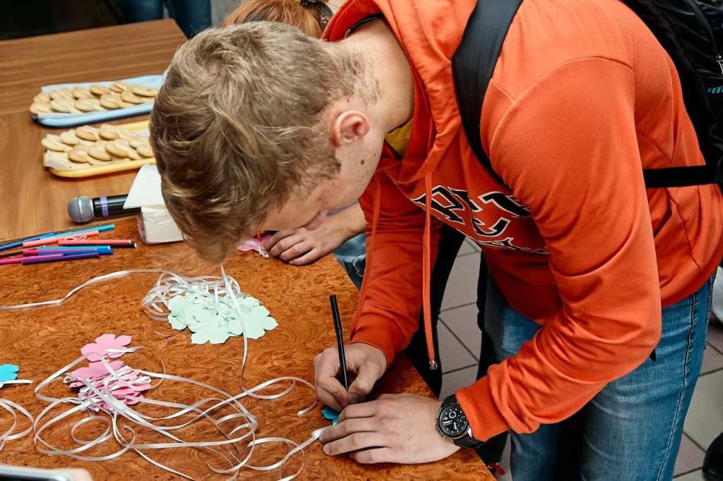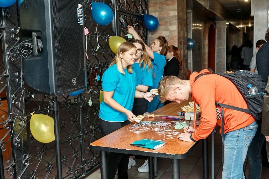 30 сентября в рамках юбилейной недели студентами объединенного совета обучающихся была проведена акция «Мы вам желаем в юбилей». Мероприятие проходило под музыку в самом людном месте обеденного перерыва – в столовой НТГСПИ. У каждого желающего была возможность написать пожелание или поздравление в адрес института на заготовленной форме и прикрепить его рядом с шарами. За проявление активности всем участвующим в подарок выдавался сахарный кренделек в виде юбилейного числа 80. Много добрых и искренних пожеланий, улыбки студентов и преподавателей, непередаваемая атмосфера праздника очень ярко подчеркнули это мероприятие, оставив у участников и организаторов лишь положительные эмоции.