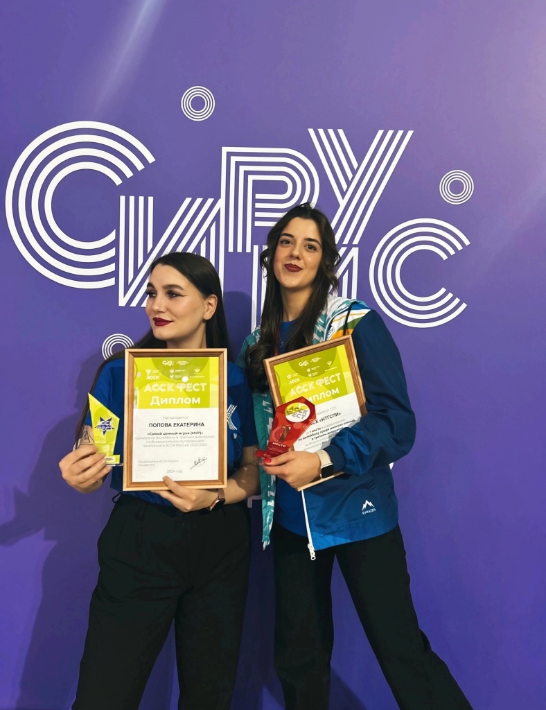 27 ноября стартовал АССК.Фест, который проходит в этом году в Сочи на базе пгт Сириус. Девушки представляли наш институт в таких видах спорта, как волейбол и баскетбол (3×3). В соревнованиях по волейболу они заняли 1 место, а в баскетболе – 4-е. В личном первенстве Ксения Иванова победила в номинации «Лучший подающий», а Екатерина Попова стала «Самым ценным игроком MVP».