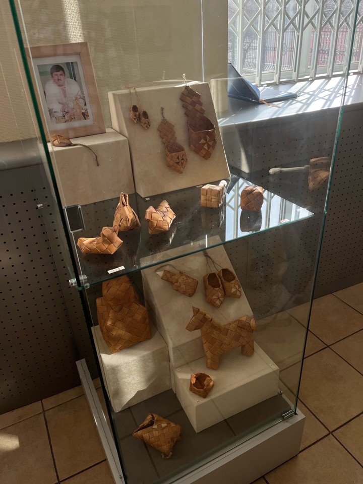 На первой выставке представлено около 50 предметов из экспозиции музея «Солнечная береста»: небольшая коллекция старинных берестяных изделий, раскрывающих историю промысла на Урале; изделия современных мастеров из разных регионов страны и произведения самого мастера и основателя музея – Сергея Коротчени.