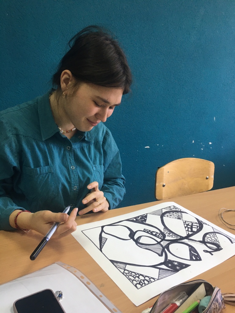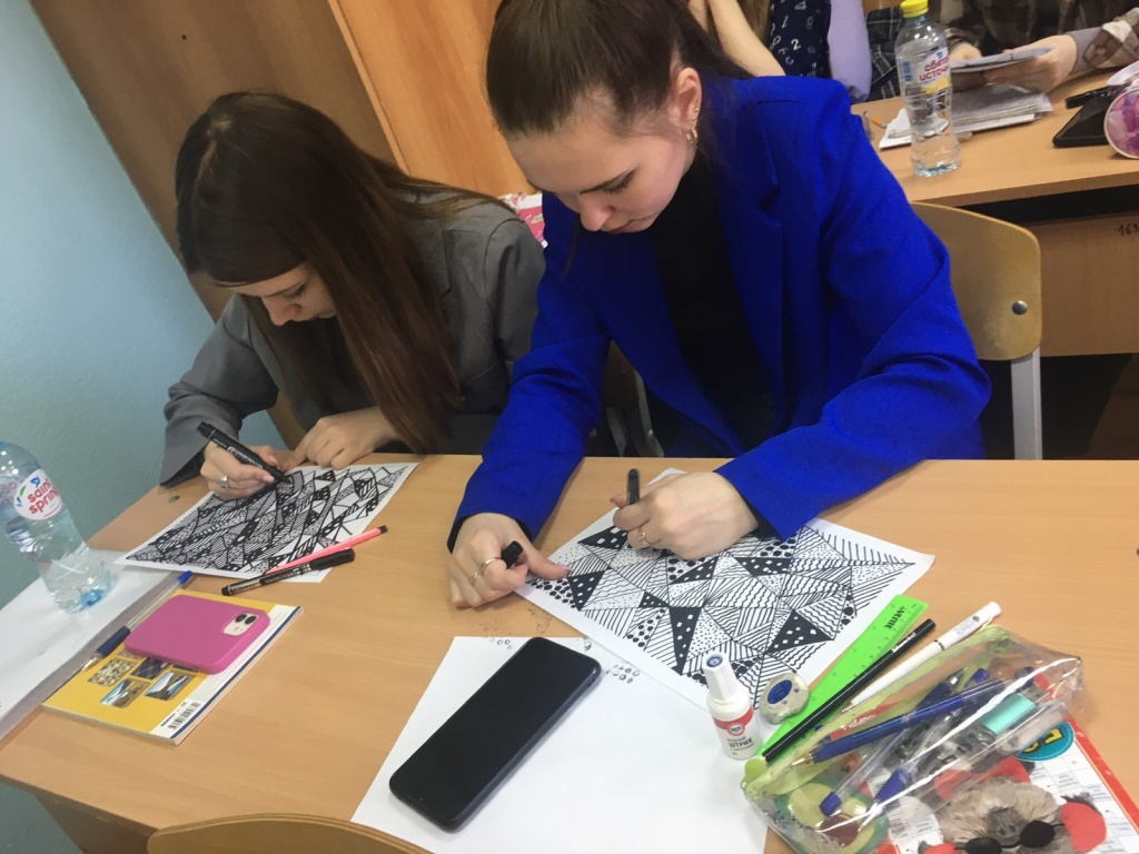 Студенты 3 курса дневного обучения направления подготовки «Социальная работа», профиль «Управление и предпринимательство в социальной сфере» и студенты заочного обучения под руководством канд. ист. наук, доцента Н. А. Тарасовой и канд. пед. наук, доцента, Т. Ю. Основиной активно отрабатывали приемы арт-терапии, методы которой освоили в процессе изучения дисциплины «Технологии социальной работы». Целевая установка – расширение психологической грамотности как компонента проекта «Педагогический трансфер „Социальное образование”» за счет современных методов психологи. Студенты практиковали умение вычленить конкретное чувство, эмоцию, разрушающий фактор и выразить его.