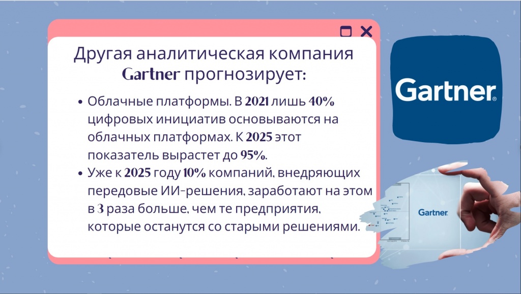 Егор Юсупов, участник из г. Челябинск, утверждает, что в 2024 г. большая часть инвестиций в нашей стране будет направлена на цифровую трансформацию в сфере экономики. Обновленные облака, искусственный интеллект, контроль за правильным и эффективным использованием данных будут являться приоритетными направлениями в нашей стране.