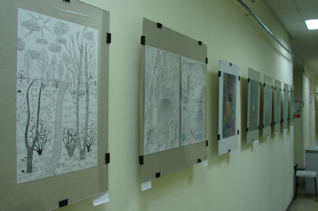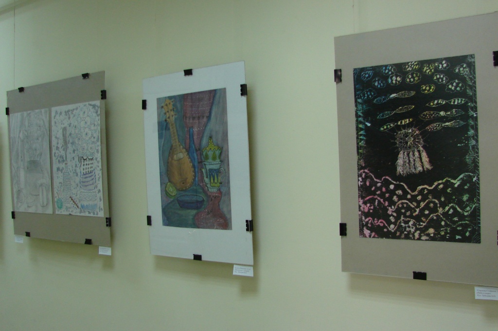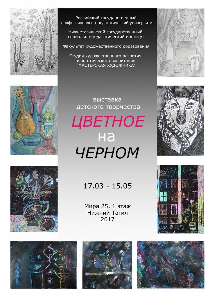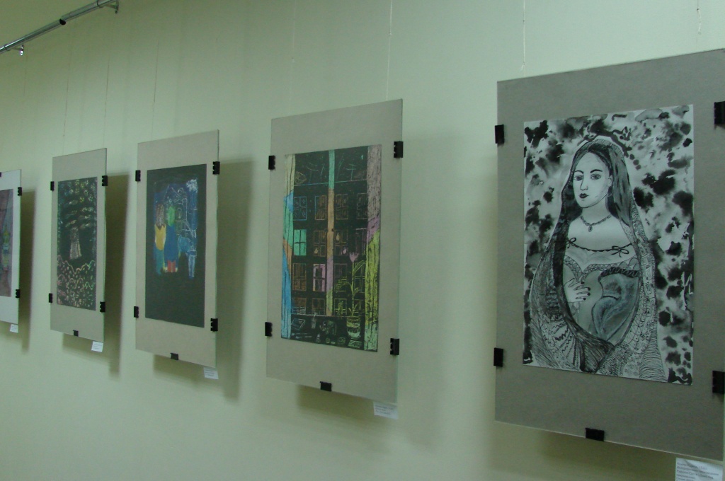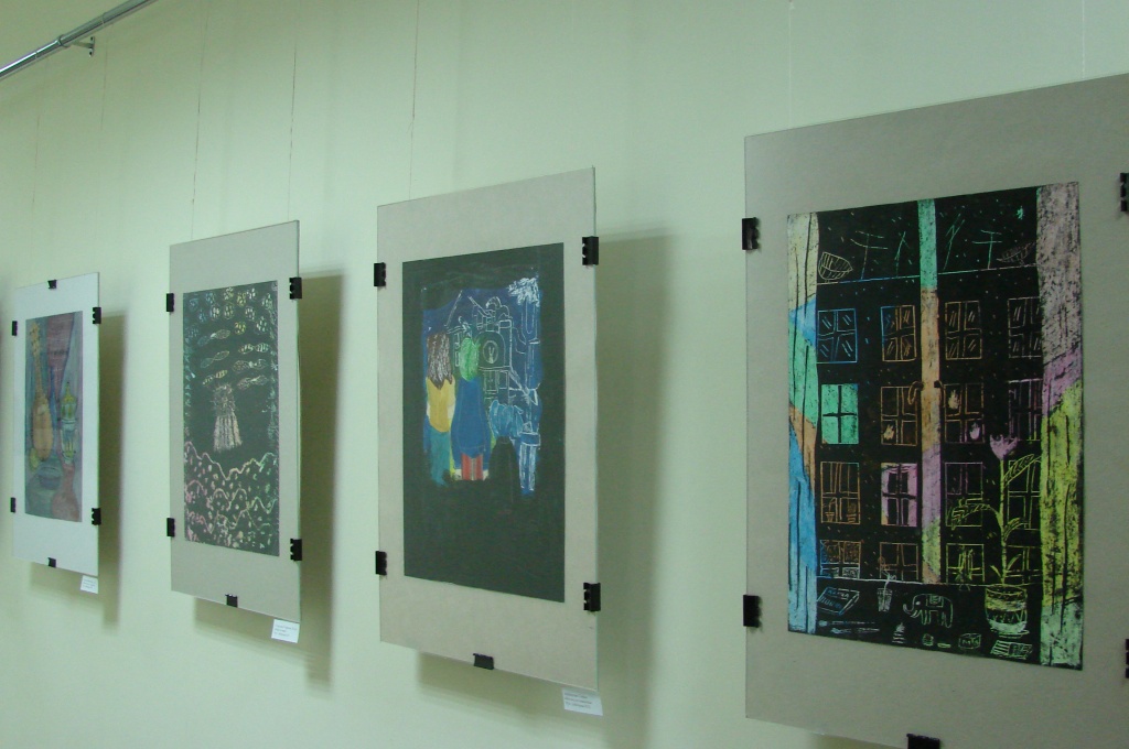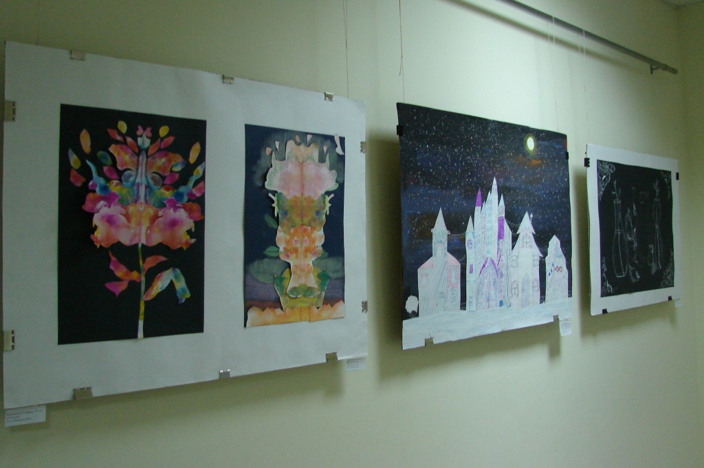 17 марта на 1-м этаже ФХО открылась выставка детского творчества «Цветное на черном». Выставка является продолжением экспозиции «Графические фантазии», представленной в декабре 2016 г. в выставочном зале ФХО. В нее вошли работы учащихся студии «Мастерская художника», выполненные в различных графических техниках в течение года. В том числе множество работ в технике «граттаж», полюбившейся детям младших групп (5–7 лет) (педагог С. В. Опальная) и подросткам (педагоги А. В. Кваша, Н. П. Лебедева).