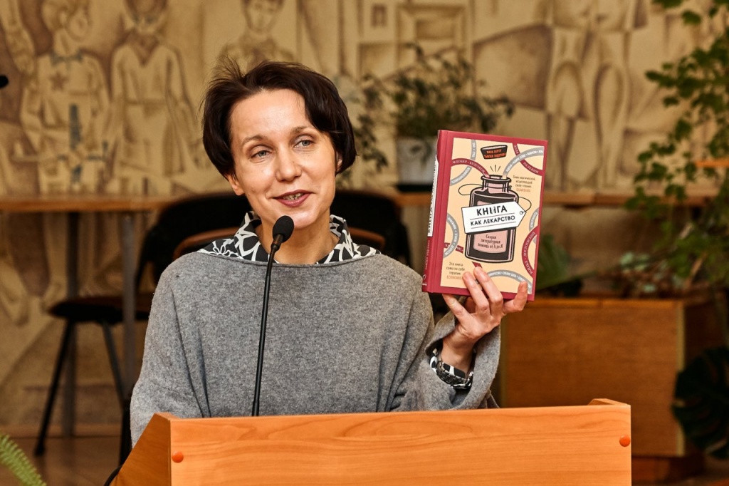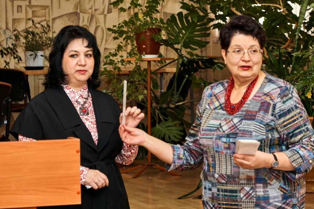 Анастасия Николаевна Садриева, доцент кафедры технологий художественного образования, была отмечена как самый активный комплектатор нашей библиотеки. Анастасия Николаевна не осталась в стороне и от этой акции книгодарения и заинтересовала всех присутствующих, преподнеся оригинальное издание «Книга как лекарство. Скорая литературная помощь от А до Я».