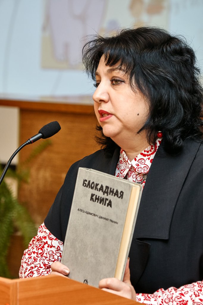 Еще один почетный даритель – Ольга Викторовна Свахина, сотрудник редакционно-издательского отдела НТГСПИ, рассказала гостям акции о том, что у каждой книги обязательно есть своё лицо, свой интеллект и душа. Ольга Викторовна презентовала «Блокадную книгу» – документальную хронику беспощадного события нашей страны. Она высказала пожелание, чтобы эта книга попала в библиотеку какой-нибудь школы или детского дома нашего города. Эта книга поможет детям на пути их внутреннего становления, ведь она учит читателя быть человеком, открывая перед ним свою изувеченную душу.