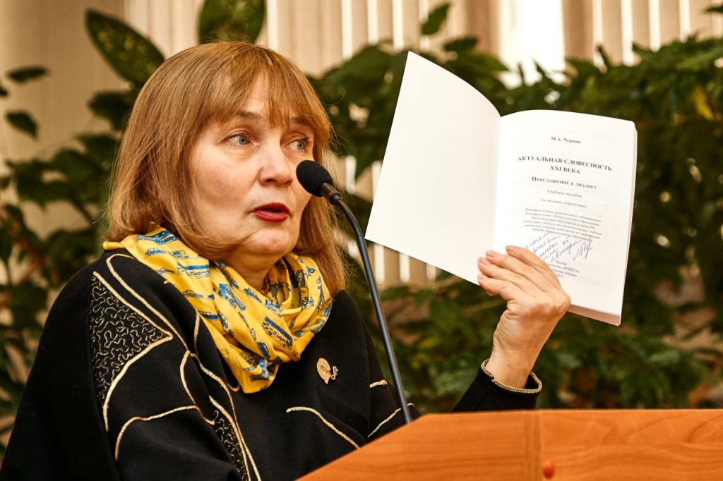 Ольга Васильевна Рыжкова, доцент кафедры гуманитарных и социально-экономических наук, передала библиотеке книгу доктора филологических наук, профессора кафедры новейшей русской литературы Российского государственного педагогического университета имени А. И. Герцена М. А. Черняк «Актуальная словесность ХХI века», специально для этого дня привезенную с международного форума, проходившего в культурной столице нашей Родины – Санкт-Петербурге.