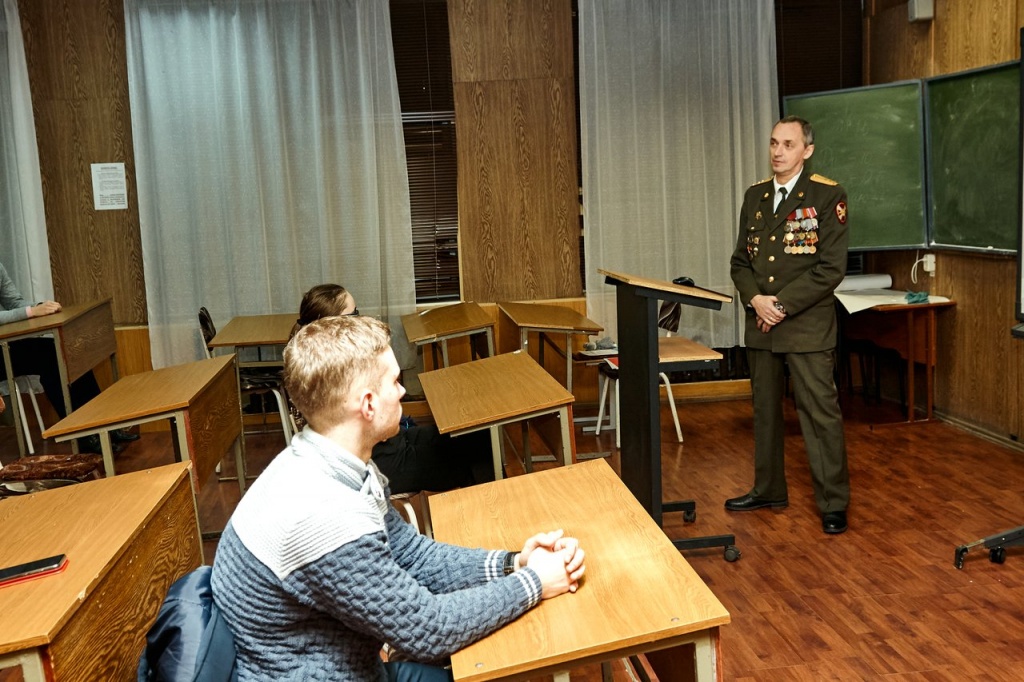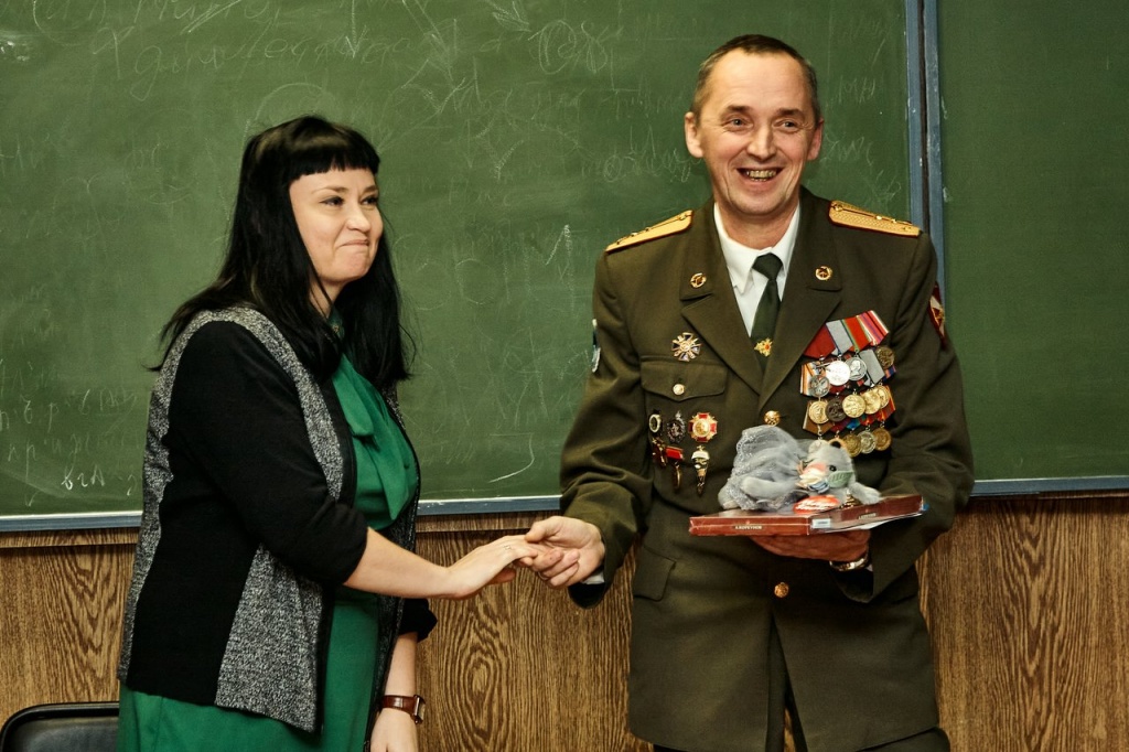 На встрече поднимались разные вопросы: когда Алексей Аркадьевич пришел на военную службу, в каких операциях участвовал, какие моменты на войне были самыми страшными, а также почему некоторые люди, вернувшись с войны физически, психологически остаются там, не умея жить в мирное время жизнью обычного гражданина.