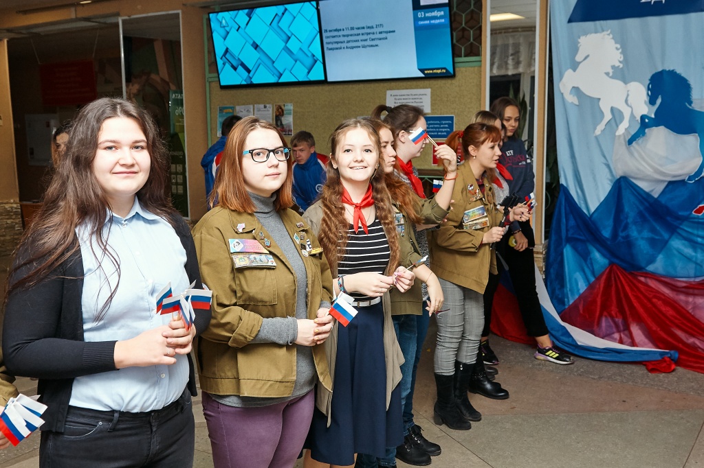 Сегодняшнее утро в НТГСПИ началось с акции, посвященной Дню народного единства. Студенческие отряды, Объединенный совет обучающихся и отдел учебно-воспитательной работы приветствовали всех входящих в институт, раздавали маленькие самодельные флаги России. В главном фойе звучали патриотические песни. Ведь завтра – День народного единства!