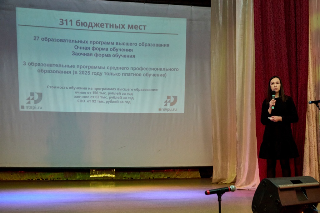 26 января в НТГСПИ прошел первый в 2025 году День открытых дверей. На встречу с институтом приехали учащиеся и родители из Нижнего Тагила, пригорода и области. Исполняющий обязанности директора института, декан факультета филологии и межкультурной коммуникации, доцент Олег Федорович Родин рассказал родителям и будущим абитуриентам об особенностях обучения в институте, важных моментах при поступлении и учебе по специальностям.