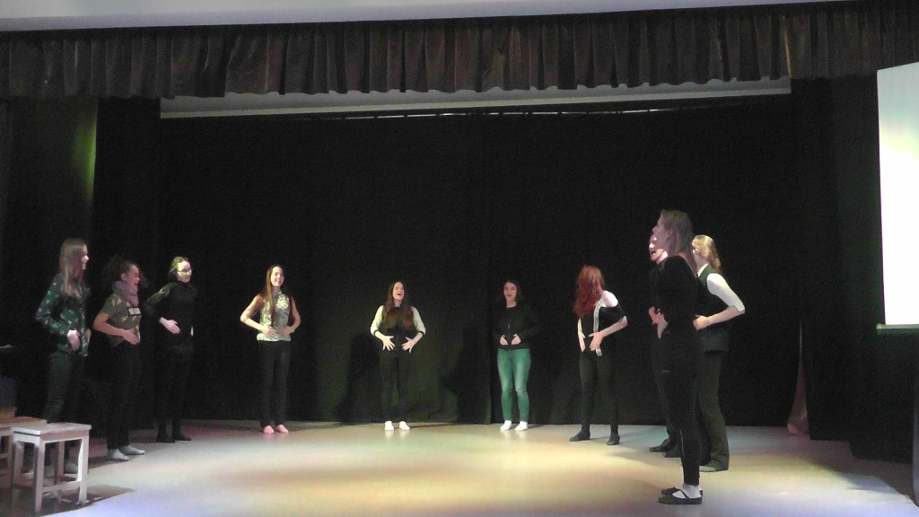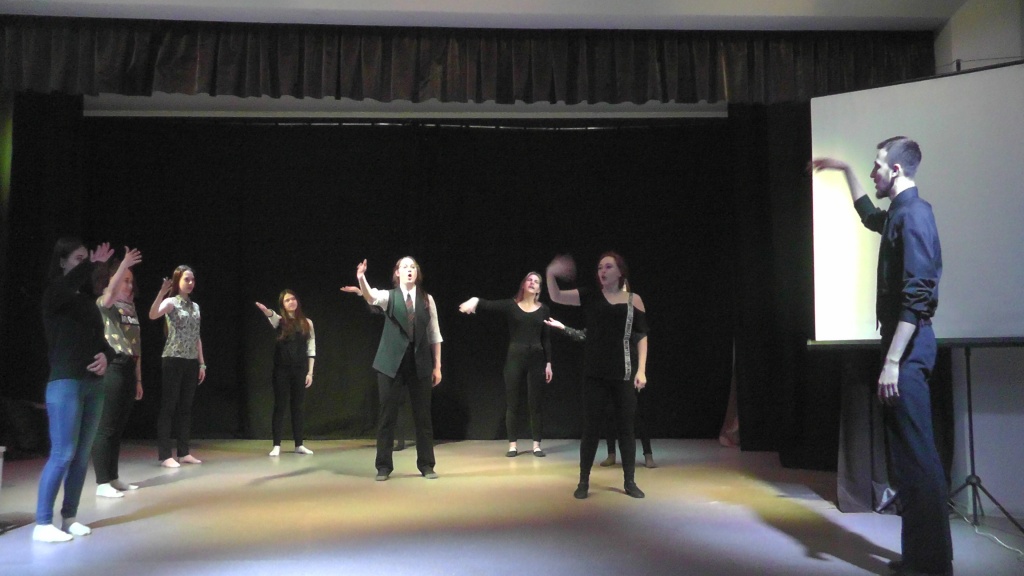 Презентация профильных дисциплин («Актерское мастерство», «Музыкально-компьютерные технологии», «Музыкально-исполнительская подготовка», «Хореографическая подготовка») была подкреплена практическим материалом: студенты 1, 2, 3 и 4 курсов представили свои творческие номера, этюды, музыкальные и инструментальные работы, чтобы абитуриенты наглядно смогли представить себе процесс обучения и его результаты. Помимо этого, студентами 2 и 4 курсов с гостями встречи был проведен небольшой мастер-класс, включающий в себя тренинги по актерскому мастерству.