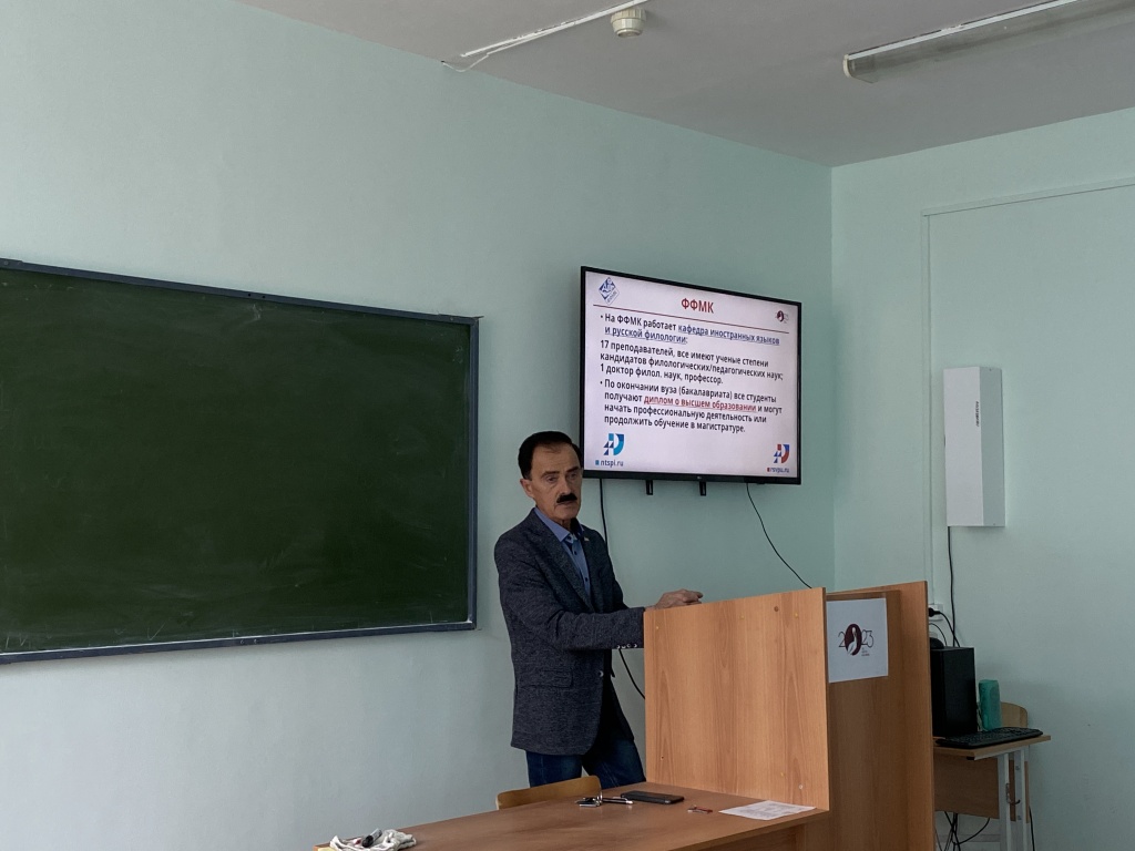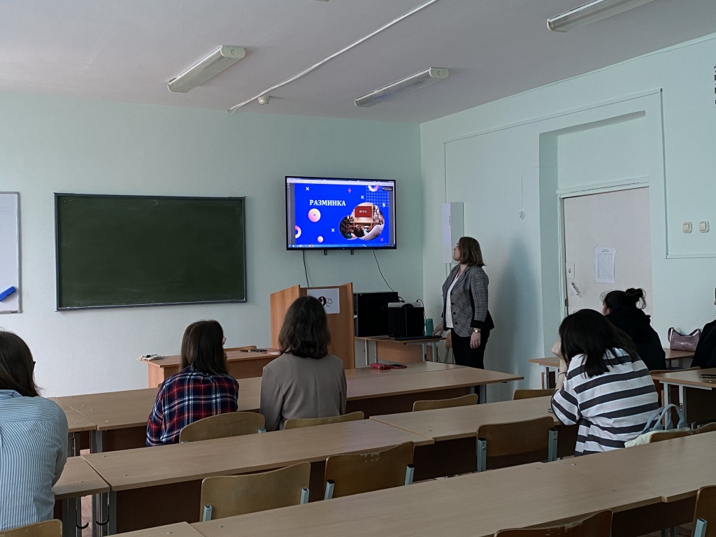 После повествования о факультете в целом заведующая кафедрой иностранных языков и русской филологии Людмила Юрьевна Дондик провела профессиональный тренинг по межкультурной коммуникации. Гостям факультета необходимо было угадать язык, ориентируясь только на слова песни, или, например, определить национальность персонажей по стереотипным высказываниям о жителях государств.