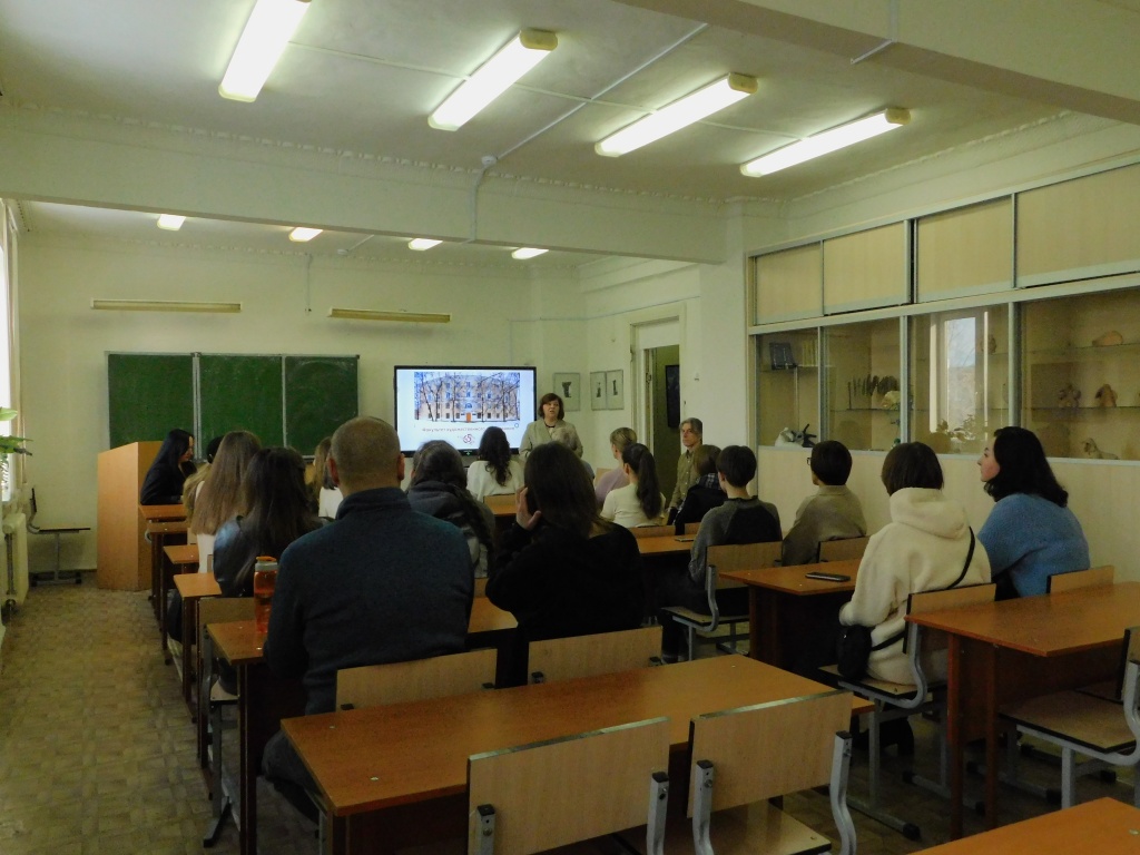 Они узнали об особенностях приема в 2024 году, о программах вступительных испытаний, получили информацию о профилях подготовки. А преподаватели факультета провели мастер-класс «Новогодняя фотооткрытка (Р. Р. Мамутов), лекцию «Теоретические основы колористической композиции» (И. П. Кузьмина), практическое занятие «Одаренные дети» (Н. С. Кузнецова).