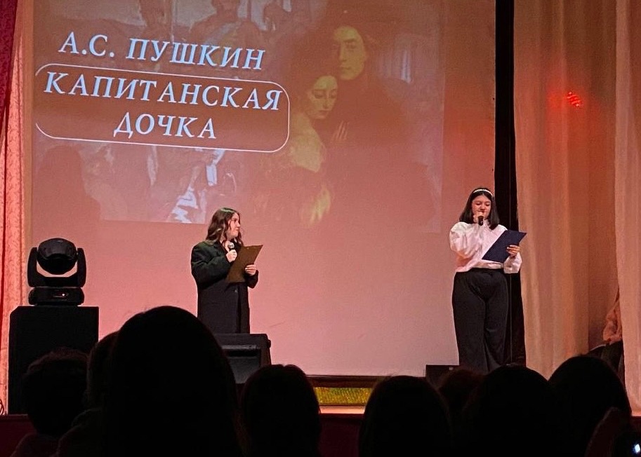 Мероприятие открылось беседой двух ведущих о жизни и произведениях великого писателя: «Дубровский», «Евгений Онегин», «Станционный смотритель», было названо множество его творений, но особое внимание получила именно «Капитанская дочка» – исторический роман, действие которого происходит во время восстания Емельяна Пугачева. С недавних пор наш факультет стал большим поклонником театральных постановок от студентов, и этот день не стал исключением. Студенты Нт-305о РЛТ и Нт-301о ФДО представили свою инсценировку бессмертного произведения и впервые выступили на сцене актового зала. Прекрасный сценарий от студентки третьего курса Наймушиной Екатерины (Нт-305о РЛТ) позволил охватить события всего произведения, а музыка и презентация, подготовленные Анастасией Ясыревой (Нт-305о РЛТ), позволили глубже окунуться в атмосферу и прочувствовать все детали истории. Подбор студентов на главные роли привел в восторг всех зрителей, громкие овации были тому подтверждением. Невозможно выделить кого-то одного из актеров, но вот одни из главных «звездочек» постановки: молодой офицер Пётр Гринев (Марина Алешина), донской казак Емельян Пугачев (Юлия Бурухина), дочь коменданта Белогорской крепости Маша Миронова (Екатерина Наймушина), крепостной Савельич (Ида Бенц), офицер и соперник главного героя Алексей Швабрин (Анастасия Духтанова), начальник Белогорской крепости Капитан Миронов (Анастасия Ясырева), Василиса Егоровна (Софья Еловикова) и многие другие.