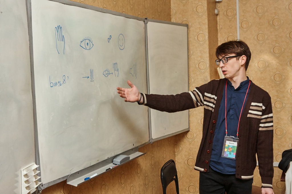 А попрактиковаться в прочтении истинного состояния собеседника студенты смогли в рамках этапа «Пластика чувств», применяя интуицию и смекалку, чтобы определить эмоциональное состояние, которое показывали организаторы.