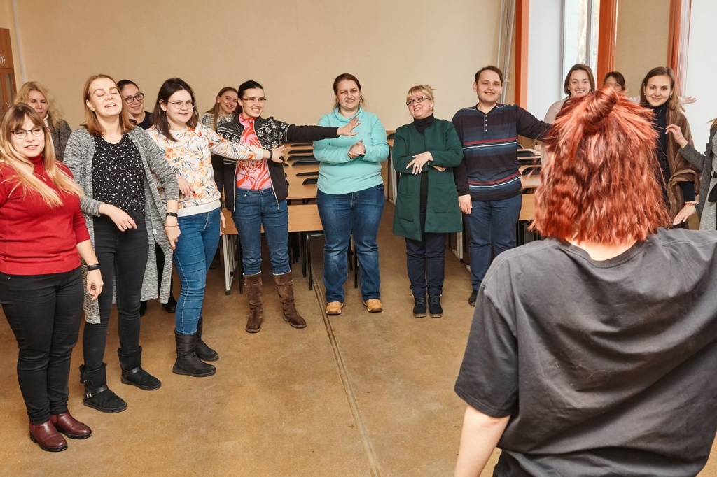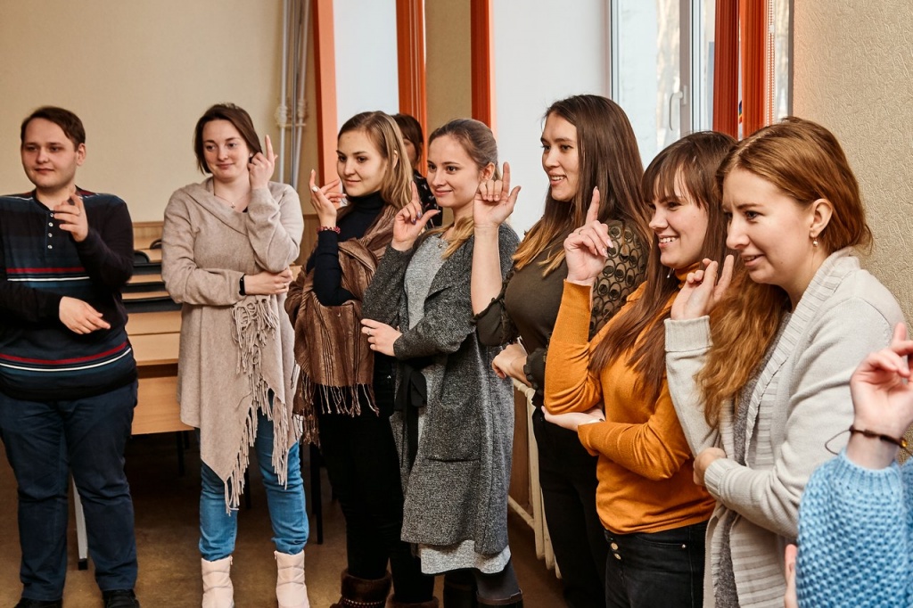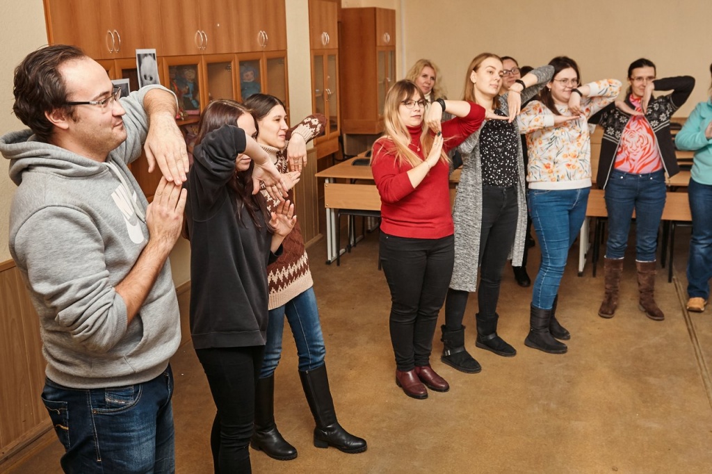 На этапе «Вся жизнь – театр» студентам было предложено оказаться в роли другого человека. Кто-то из участников стеснялся, смеялся, стараясь изобразить совершенно непохожего на себя человека, но благодаря поддержке организаторов все были по-настоящему увлечены игрой. Улучшить свои коммуникативные навыки гости могли на этапе «Контакты», где им предлагалось за несколько секунд завести разговор на заданную тему, что было достаточно непросто.