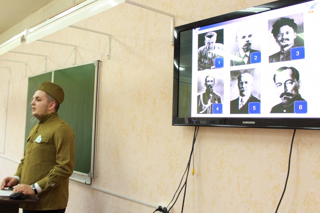 Потом выпускники смогли вновь почувствовать себя студентами, вздохнуть знакомый запах аудиторий, мела и ощутить дух истории. Для них прочитал лекцию и провел брифинг «100-летие Октябрьской революции: взгляд студентов разных поколений» кандидат исторических наук, доцент кафедры ГСЭН Виктор Федорович Мезенцев. Выпускники так втянулись в процесс, что не хотели выходить из аудитории, но желание пообщаться оказалось сильнее, и все смогли насладиться беседой за чашкой чая с однокурсниками, преподавателями, студентами, которые собрались за общим столом.