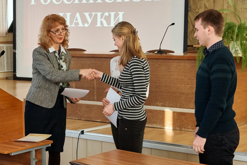 Далее с докладами выступили заместители деканов по научной работе каждого факультета. Затем состоялось награждение преподавателей и студентов института благодарственными письмами и почетными грамотами за активное участие в научно-исследовательской работе.