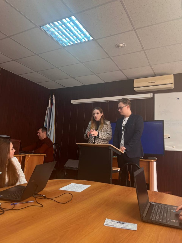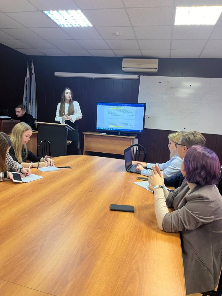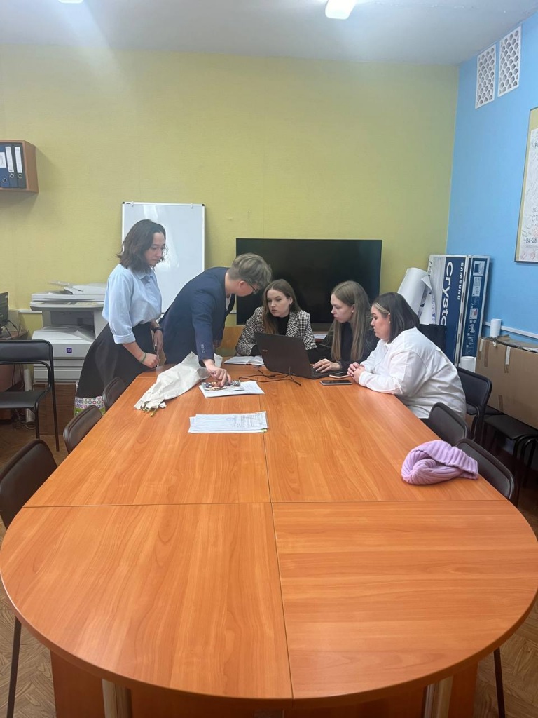 День для студентов, временно исполняющих обязанности администрации вуза, начался с планового заседания, на котором были озвучены цели и задачи на день. После планерки часть студентов отправилась выполнять задания своих поручителей, а остальные приступили к разработке важных документов и положений.