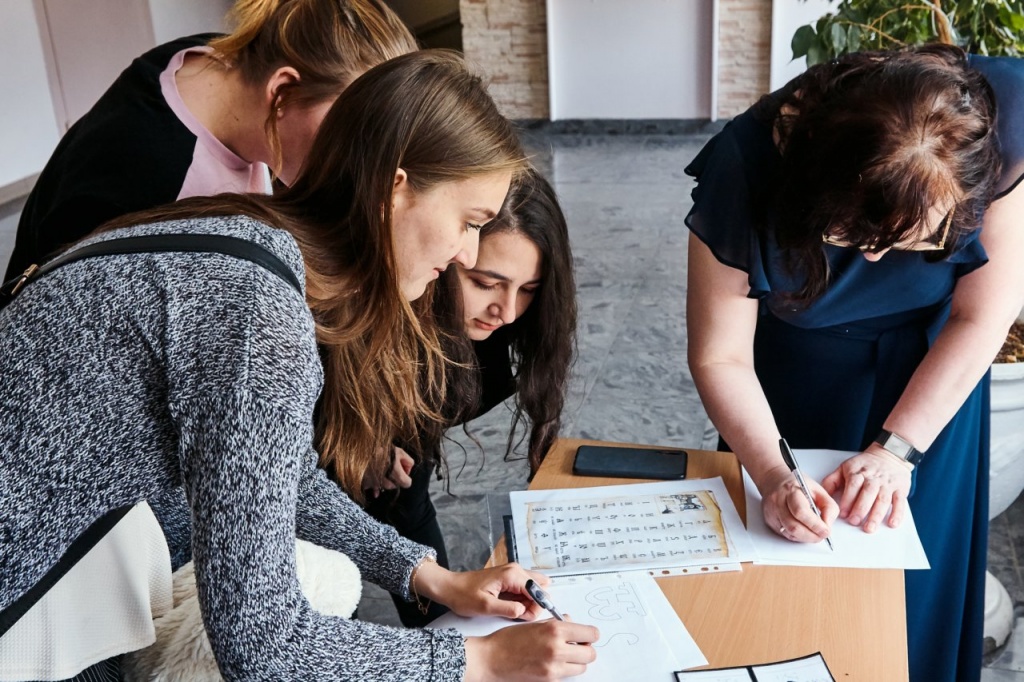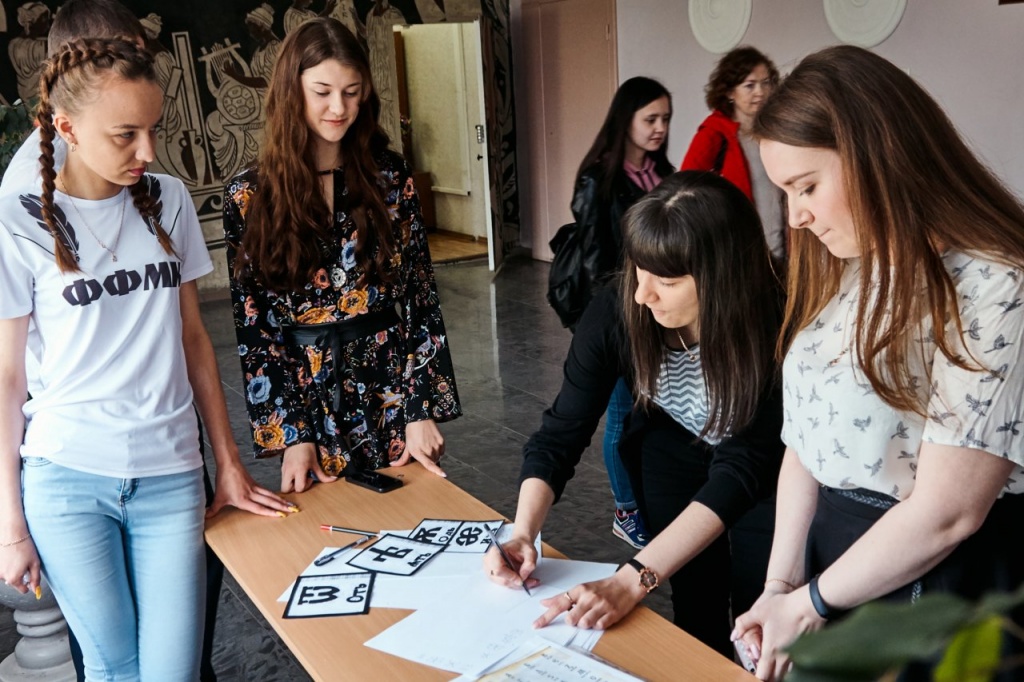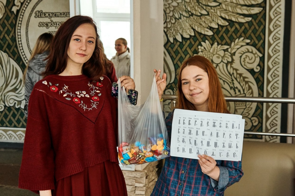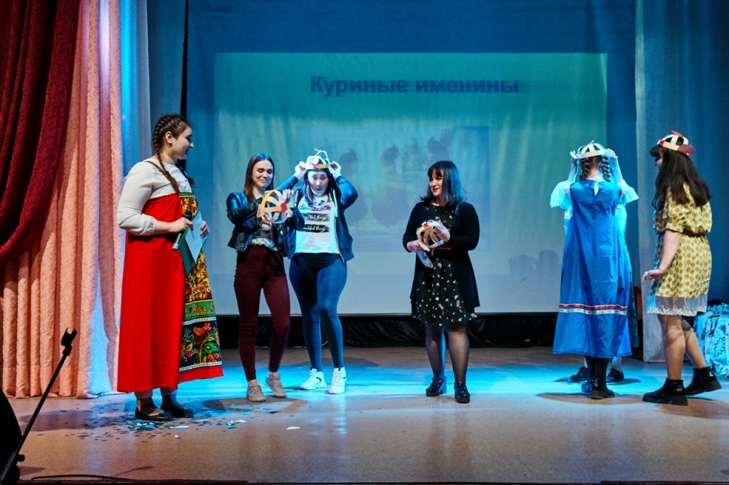 На большой перемене филологи провели мастер-класс по русским народным танцам и показали особенности письма букв старославянского алфавита. Без внимания не остался и Учёный совет нашего института, члены которого узнали об истории праздника и получили сладкие подарки в виде сказочных золотых петушков.