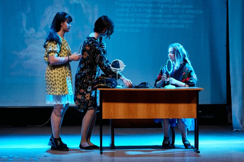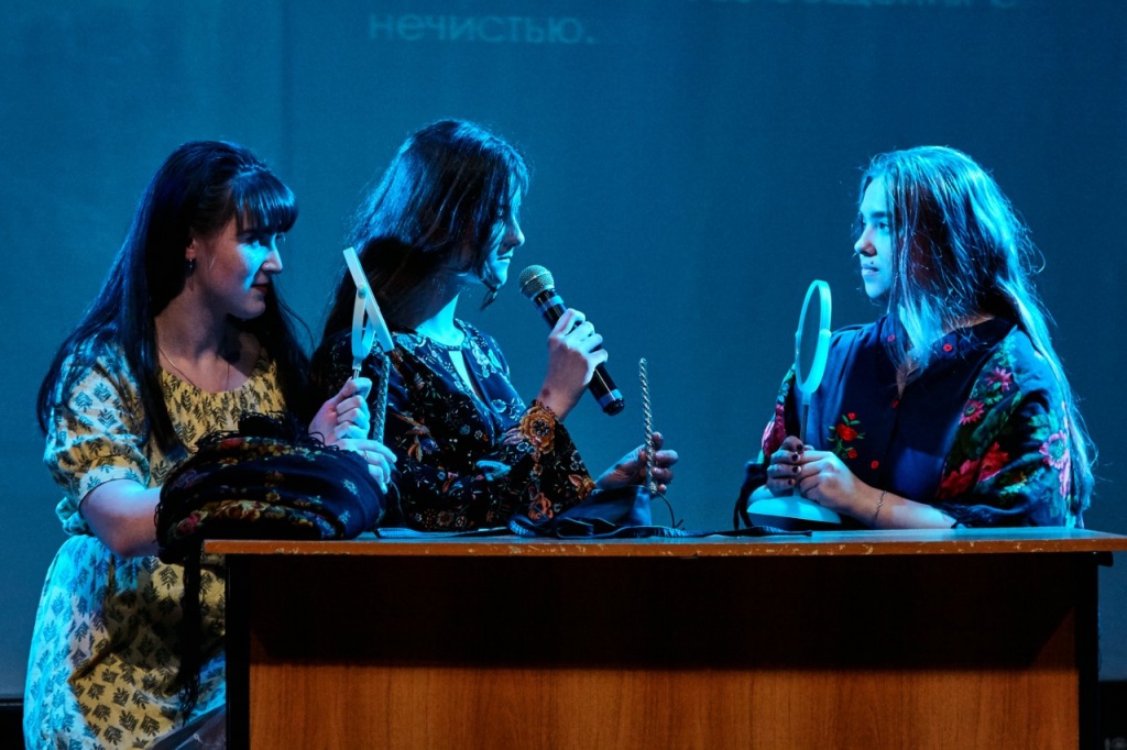 А затем... – полное погружение в мир славянской культуры. Организаторы познакомили зрителей с богами и духами древних славян. Показали, как происходили гадания на Руси: отрывали по лепесточку с ромашки, прыгали через костер. Зрителям предложили попробовать свои силы в петушиных боях, что вызвало всеобщий восторг. Также студенты-филологи инсценировали фрагмент из произведения Н. В. Гоголя «Вечера на хуторе близ Диканьки», где наглядно показали многие традиции и поверия славян.