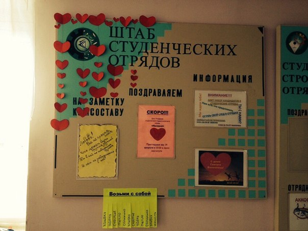 Влюбленные в этот праздник дарят любимым и дорогим людям цветы, конфеты, игрушки, воздушные шарики и особые открытки «Валентинки» со стихами, любовными признаниями или пожеланиями любви. Отряды НТГСПИ украсили свои мастерки сердечками и стихами, чтобы поздравить всех студентов, преподавателей и сотрудников института.