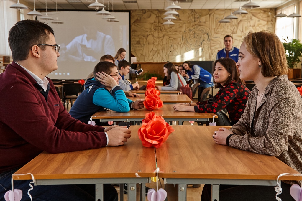 День Всех Влюбленных – это прекрасный праздник, наполненный нежностью и любовью, день, когда в воздухе чувствуется романтика. Именно поэтому студенты решили отметить столь чудесный праздник по-особенному. Отделом учебно-воспитательной работы и членами Объединенного совета обучающихся в читальном зале НГСПИ были организованы быстрые свидания, целью которых было познакомить студентов друг с другом или даже помочь им найти свои «вторые половинки».