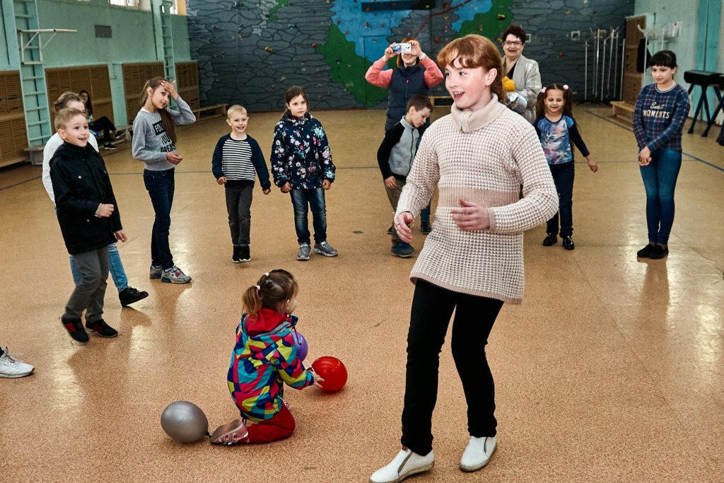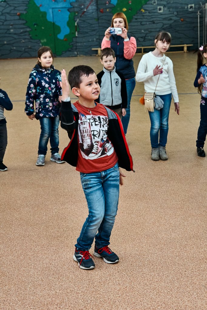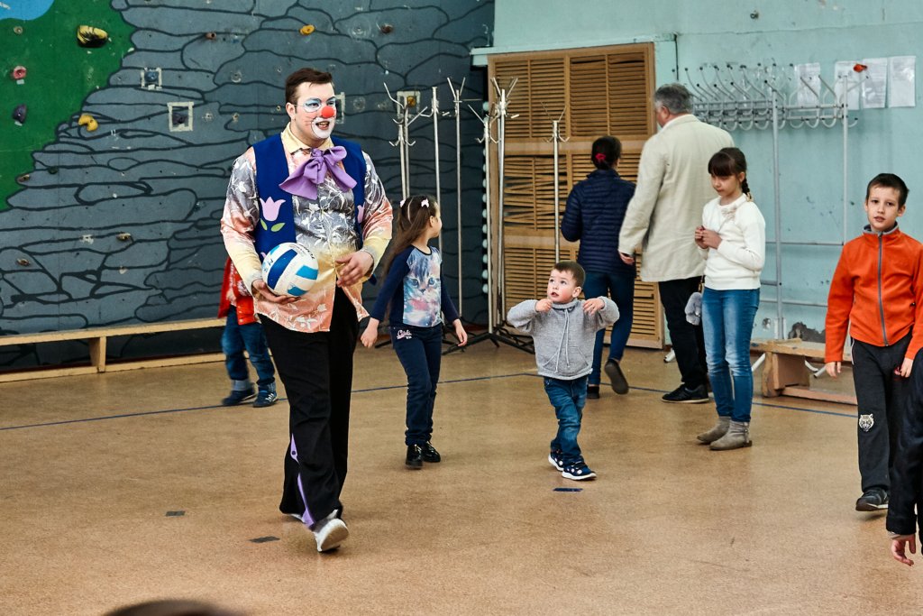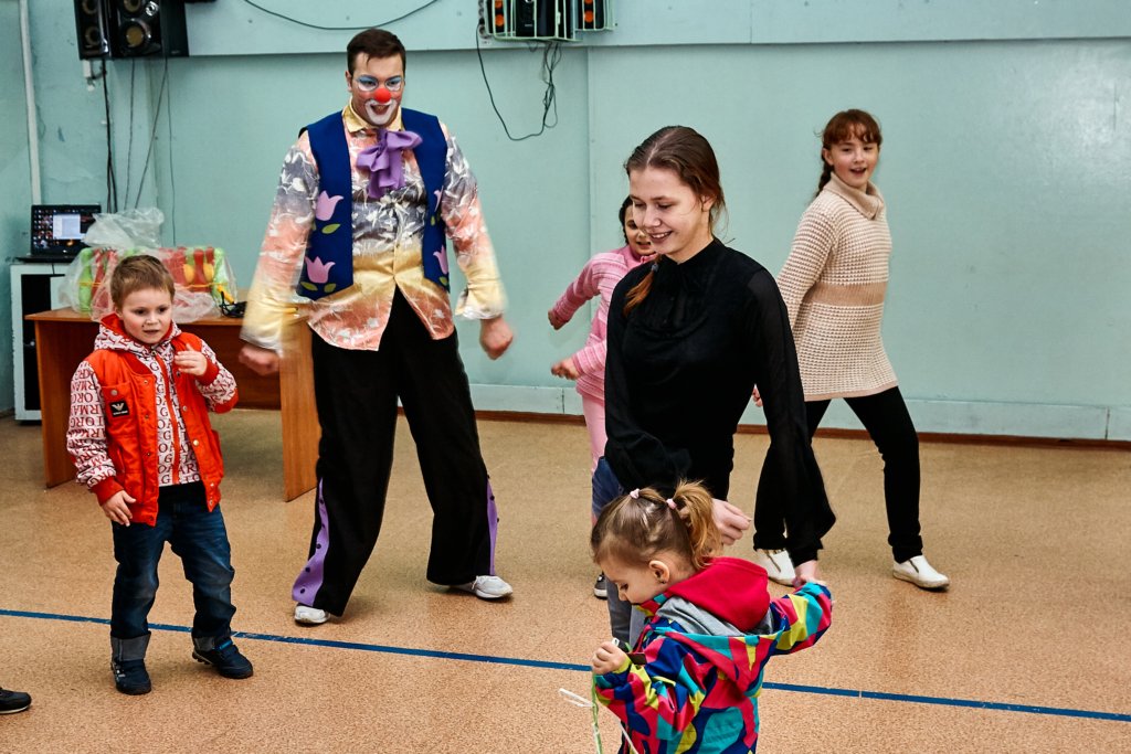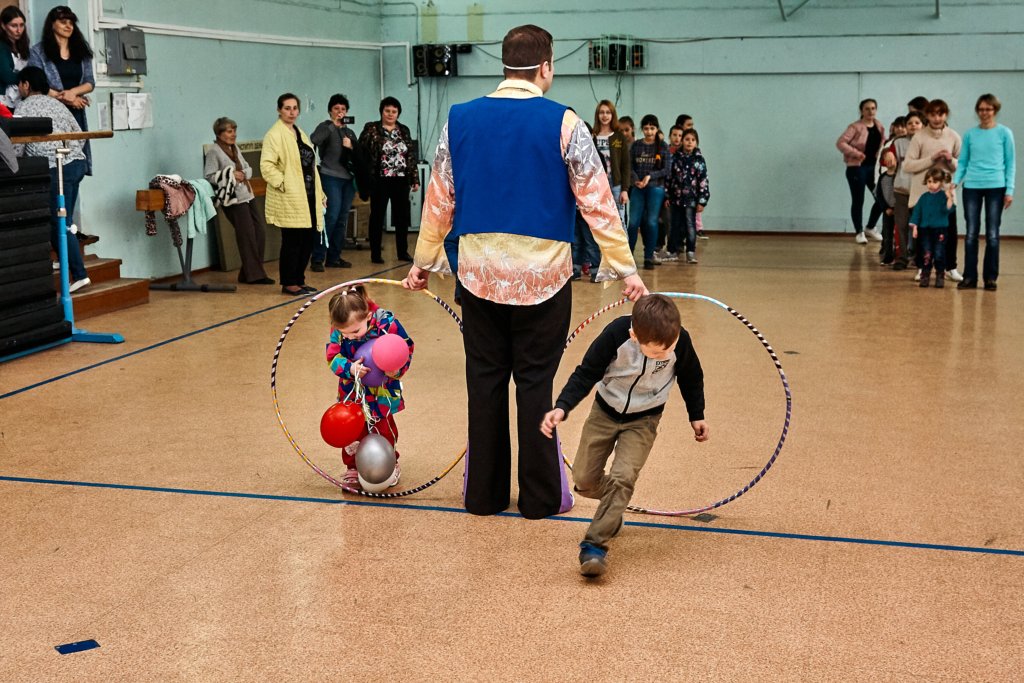 А после мальчишки и девчонки перешли в малый спортивный зал, где молодые артисты устроили спортивную игровую программу с массой веселых конкурсов и состязаний и, конечно же, сладких подарков от профсоюзной организации.