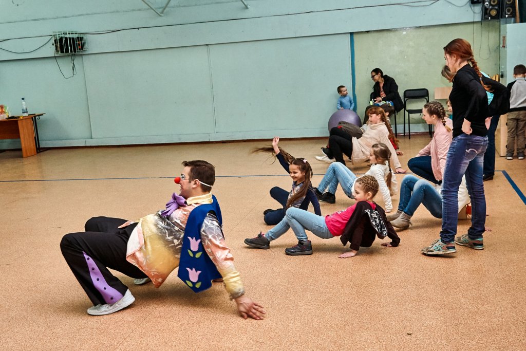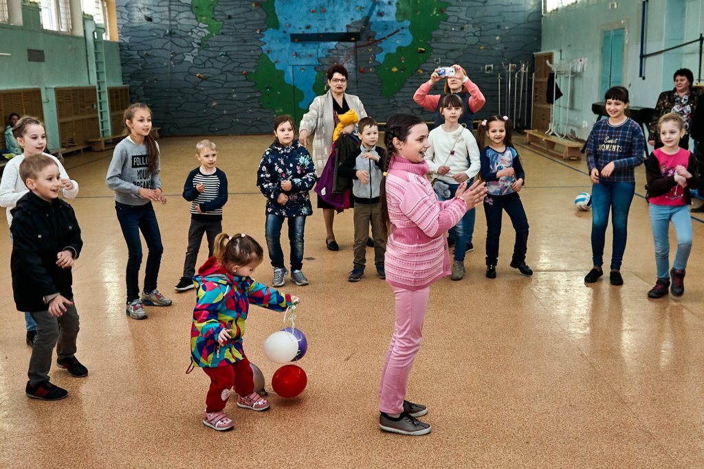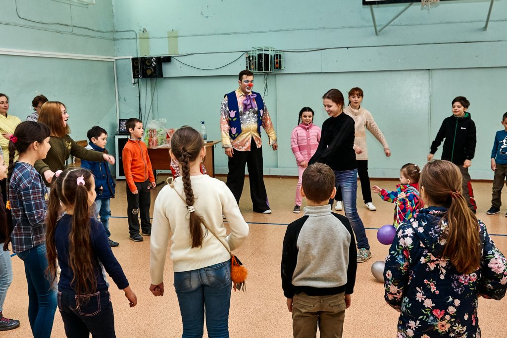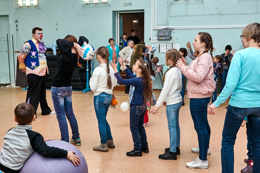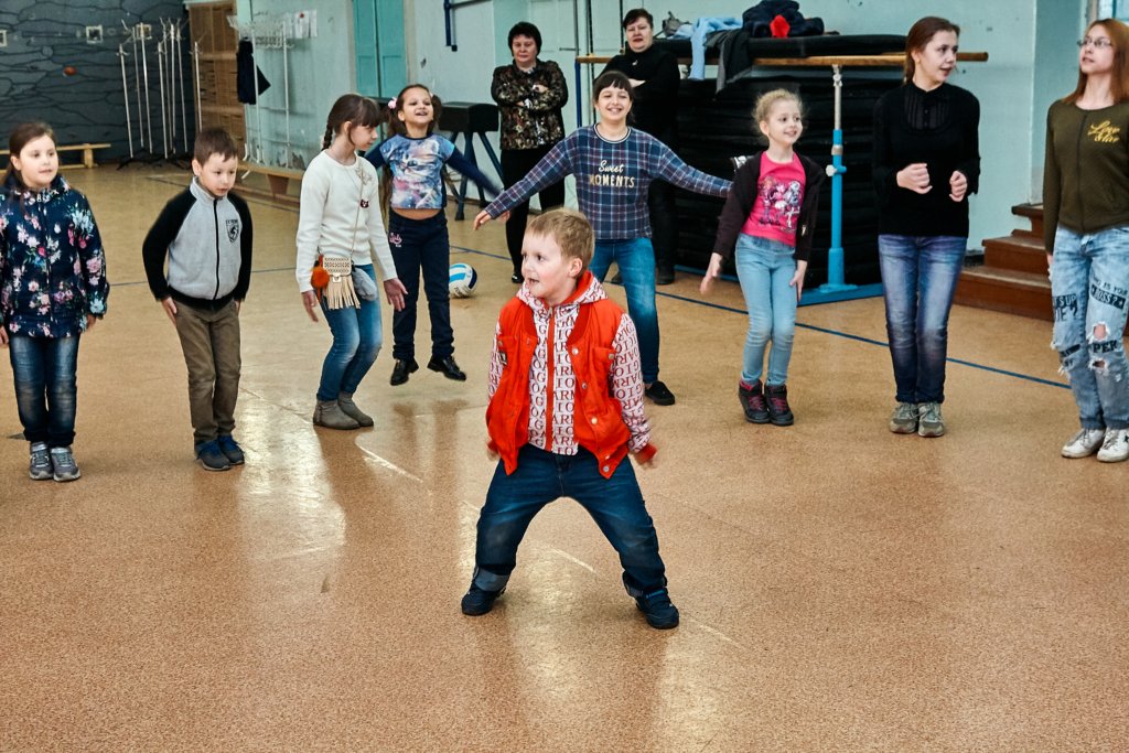 А после мальчишки и девчонки перешли в малый спортивный зал, где молодые артисты устроили спортивную игровую программу с массой веселых конкурсов и состязаний и, конечно же, сладких подарков от профсоюзной организации.