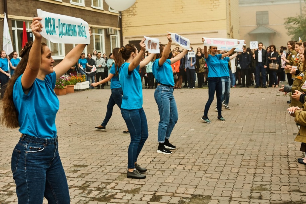 1 сентября в нашем вузе состоялась торжественная линейка. В честь праздника студенты творческих коллективов и объединений Управления воспитательной работы НТГСПИ продемонстрировали, что в институте можно не только учиться, но и танцевать, петь, заниматься научной и спортивной деятельностью.