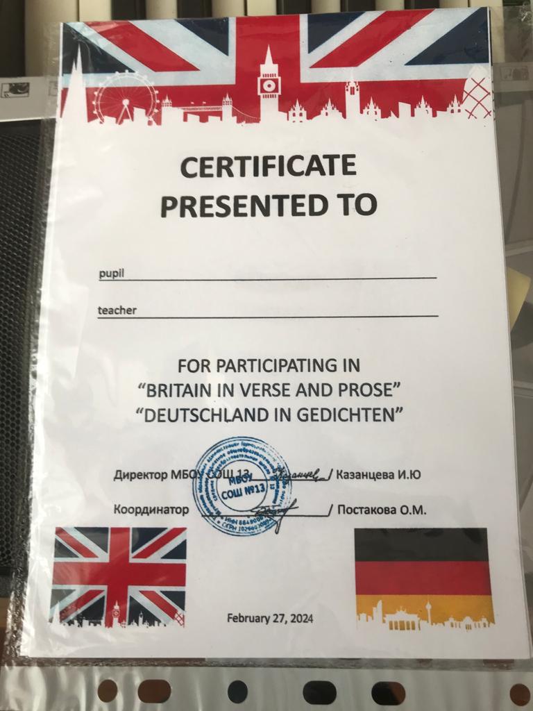 В конкурсе, проводимом в целях поддержки и развития талантливых и способных детей, привития интереса к культуре страны изучаемого языка и повышения престижа изучения иностранного языка, приняли участие школьники из с. Николо-Павловское, п. Новоасбест, с.Новопаньшино, п. Синегорский, с. Бродово, с. Покровское, п. Висим, п. Лая.