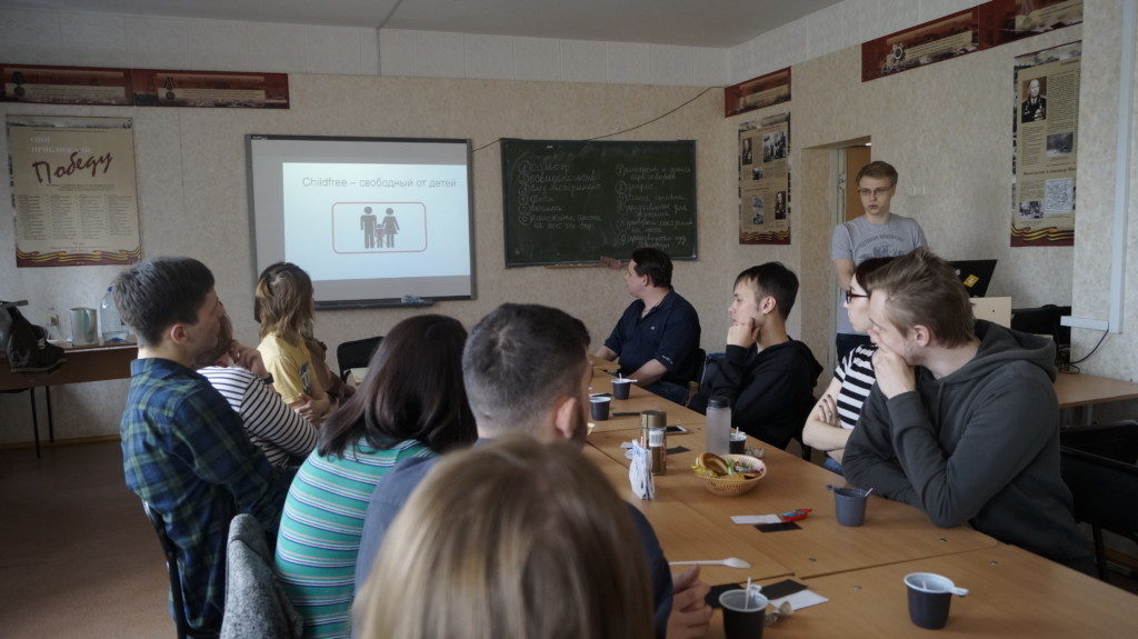 После традиционного голосования черными и белыми карточками по актуальным вопросам участники дискуссии просмотрели несколько видеороликов, рассказывающих о людях, которые, по тем или иным причинам отказывались от идеи деторождения. После каждого видеофрагмента происходило его активное обсуждение. Действительно, что такое «чайлдфри»? Явление, мировоззрение, субкультура, социальная группа, движение, ценностная установка, идеология, богоборчество, что-то еще? Со всем, кроме последнего, в молодежной аудитории готовы согласиться.