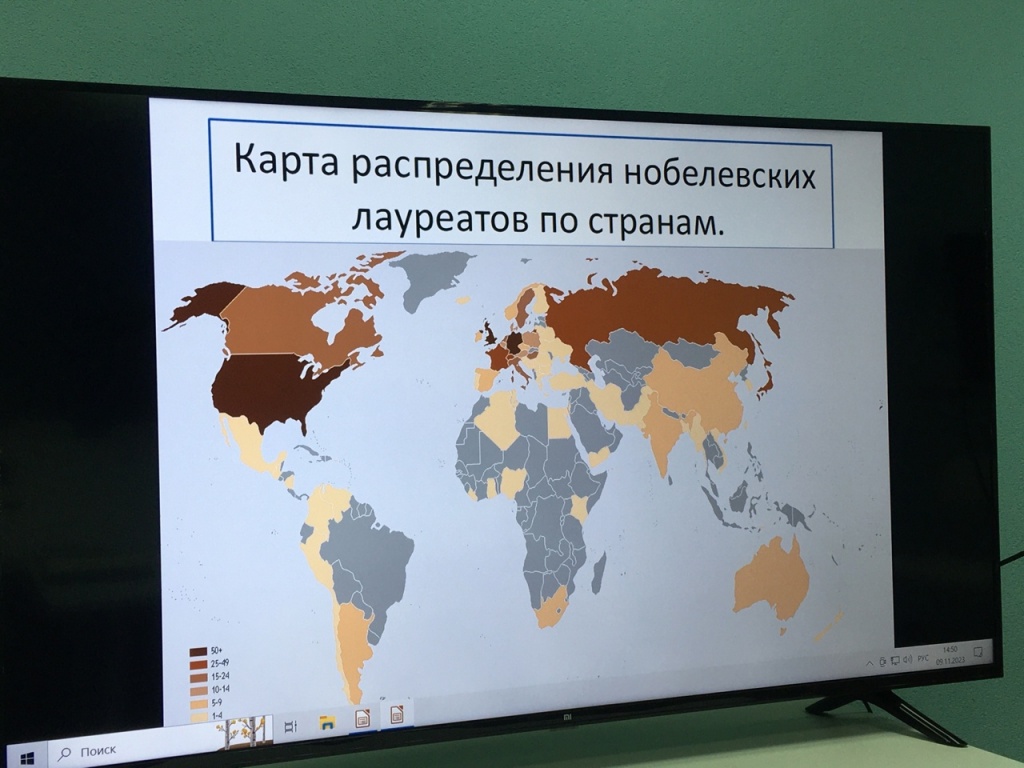 Участники встречи познакомились с историей возникновения Нобелевской премии и совершенно верно отметили, в каких направлениях возможно ее получить. Интерактивом, активизирующим аудиторию, стала юмористическая рубрика «Данетка». Например, знали ли вы о том, что данную премию чаще всего получали ученые, родившиеся 28 февраля и 21 мая?