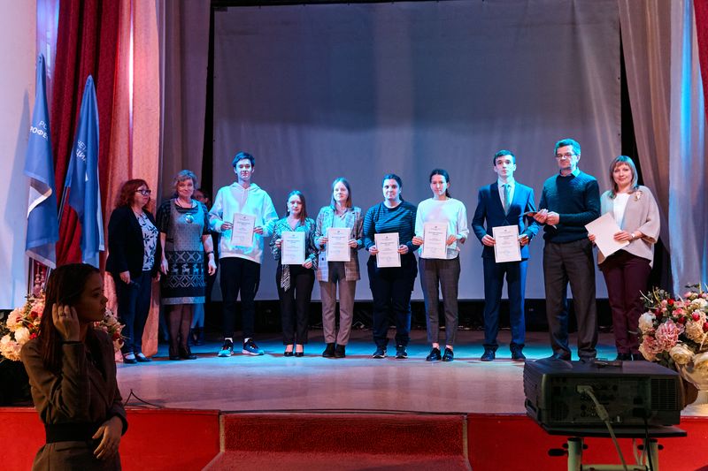 Во второй части собрания состоялась церемония награждения преподавателей, сотрудников и студентов почетными грамотами и благодарственными письмами РГППУ. Фотографии на память, когда награжденные стоят все вместе на сцене, действительно говорят о справедливости слов о том, что «мы обязаны науке больше, чем какому-либо другому виду человеческой деятельности, возникновением чувства необходимости коллективных усилий» (Ф. Жолио-Кюри).