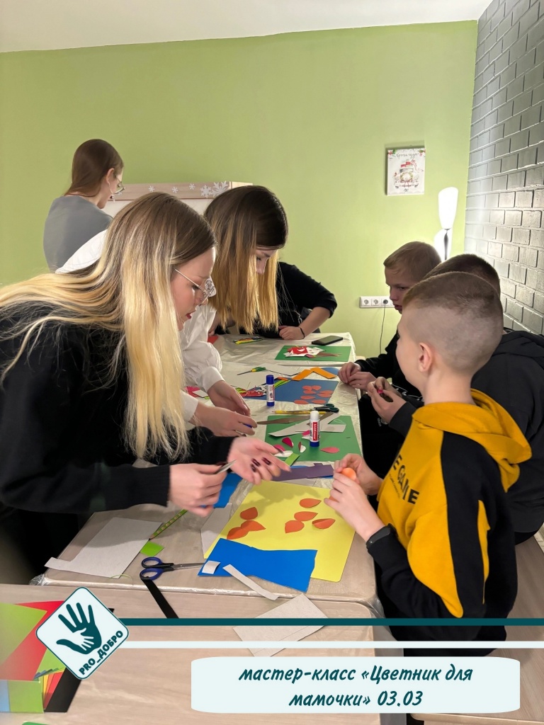 В объединении «Pro-Добро» существует несколько направлений волонтерства. Самое распространенное – социальное. Так, 3 и 5 марта волонтеры объединения посетили Клуб психосоциальной помощи «Ангелина» и провели для детей с ограниченными возможностями здоровья мастер-класс, посвященный Международному женскому дню.