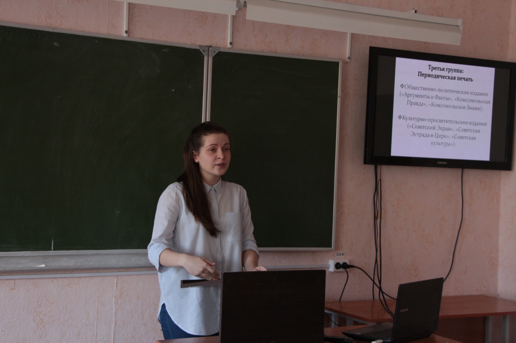 Из заявленных 14 докладов было заслушано 7. Лучшими были признаны доклады Анастасии Суховерховой, студентки 4 курса СГФ – «Особенности исследования отечественной рок-культуры 1985–1991 гг.: характеристика источниковой базы»; Алексея Жбанова, студента 3 курса СГФ – «Источники о деятельности экологических общественных организаций в фондах Нижнетагильского городского исторического архива» и совместный доклад выпускницы СГФ, библиотекаря филиала № 8 ЦГБ г. Нижний Тагил Екатерина Кашиной и студентки 1 курса СГФ Анастасии Деминой – «Социологические опросы как источник для изучения читательской культуры современной молодежи». С докладами заочных участников конференции можно познакомиться в изданном сборнике.