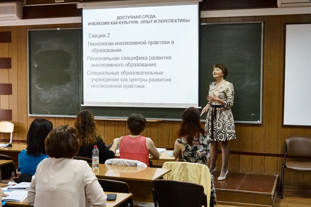 Работа конференции продолжилась в трех секциях. Доклады первой секции объединила тема «Теоретико-методологические основы инклюзии. Научные исследования в сфере инклюзивного образования. Создание универсальной безбарьерной среды».