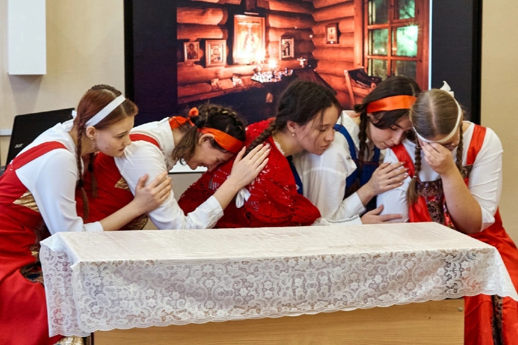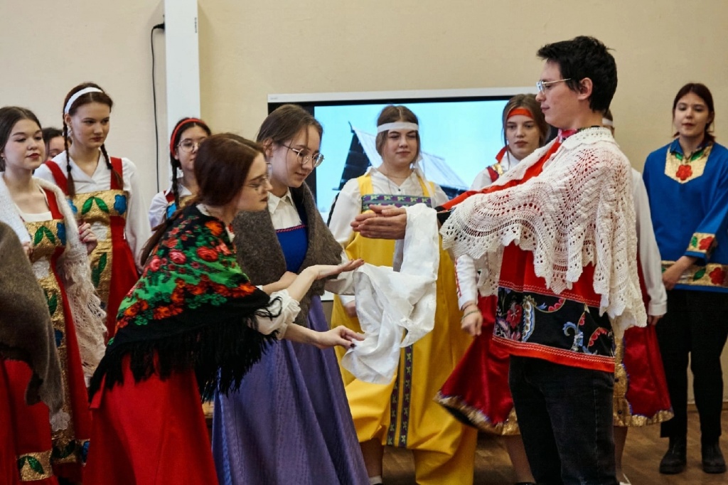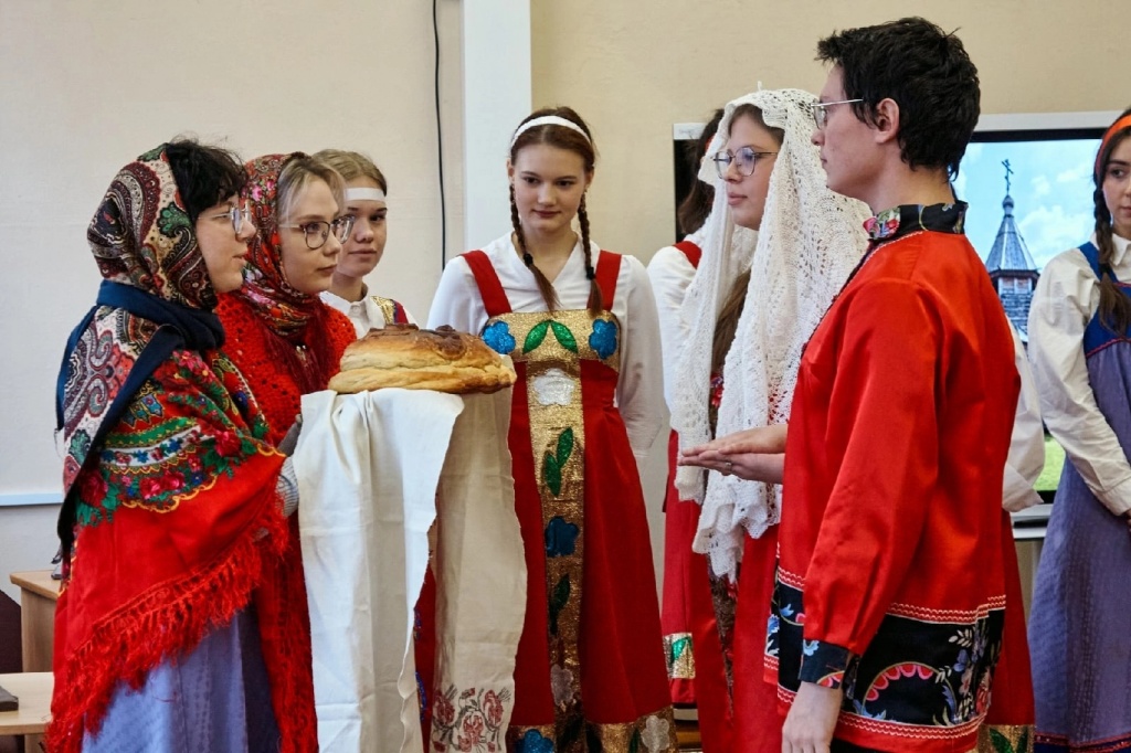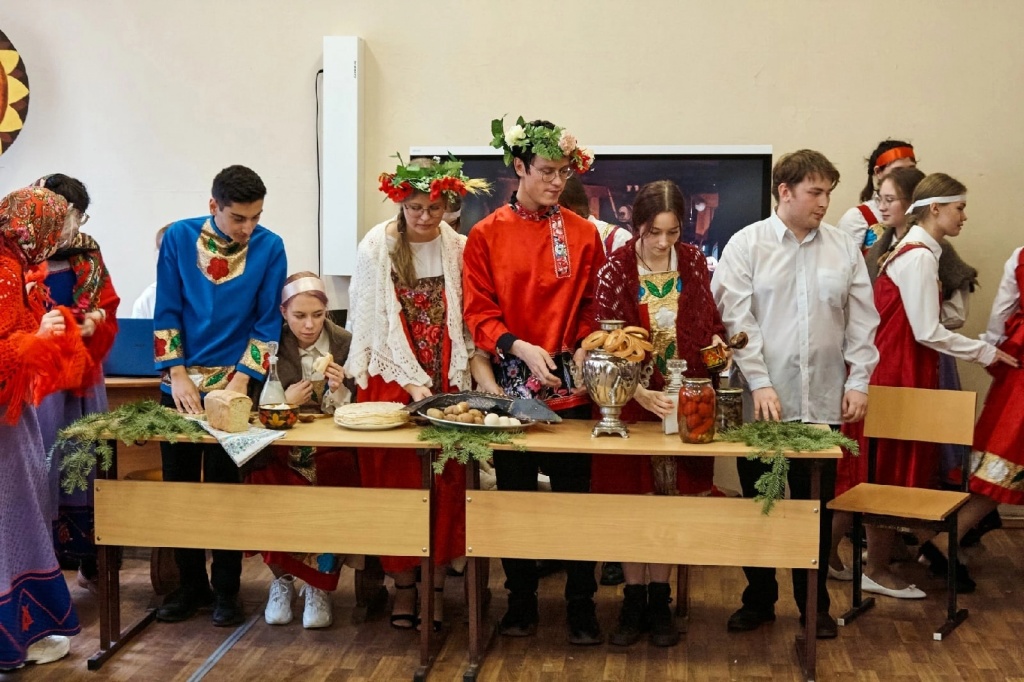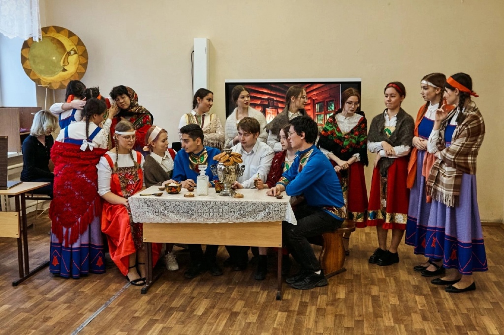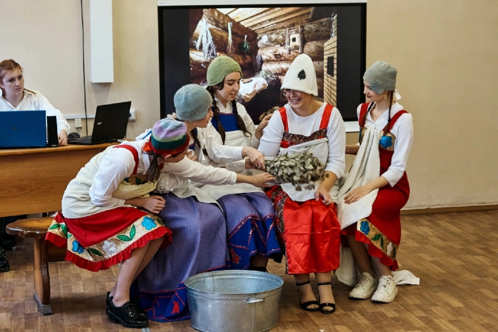 Хочется отдельно отметить то коллективное настроение, с которым студенты подходили к делу. Каждый внес свой небольшой вклад. Реквизиты, костюмы, декорации собирали «с миру по нитке». Из дома несли всё: самовар, тазики, банные веники, балалайку, деревянную расписную посуду, соленья в банках и даже настоящий каравай собственного приготовления!