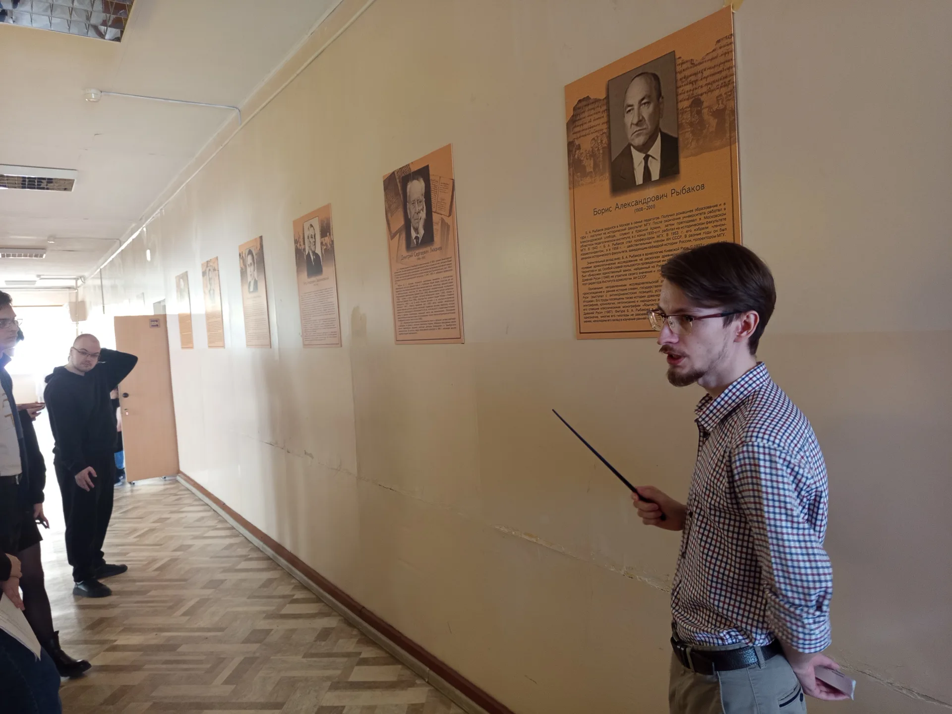 Сложность данного задания состояла в том, что в качестве экспонатов выступали планшеты, располагающиеся на третьем этаже СГФ. Каждый планшет посвящен какому-либо историку, российскому или зарубежному. Студентам следовало представить информацию планшета интересно и информативно, а также, учитывая особую важность экспоната в процессе проведения экскурсии, обратить внимание экскурсантов на значимые характеристики экспоната, раскрывающие тему. Логичные переходы от экспоната к экспонату, взаимодействие с аудиторией – все это составляющие хорошо продуманной экскурсии, которые также продемонстрировали студенты.