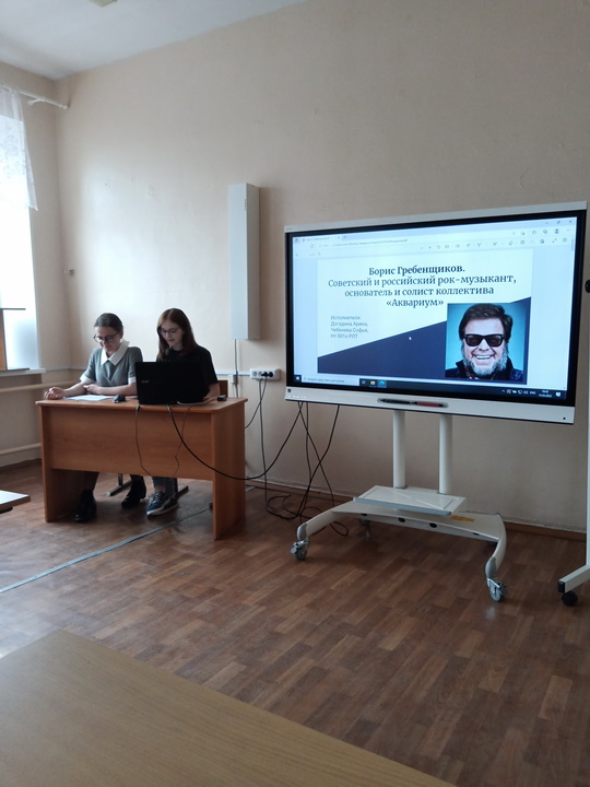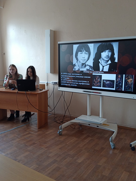 Далее слово было передано инициативной команде студентов 5 курса ФФМК, которые рассказали гостям встречи историю существования таких культовых групп Ленинградского рок-клуба, как «Аквариум», «Зоопарк», «Кино» и «ДДТ».
