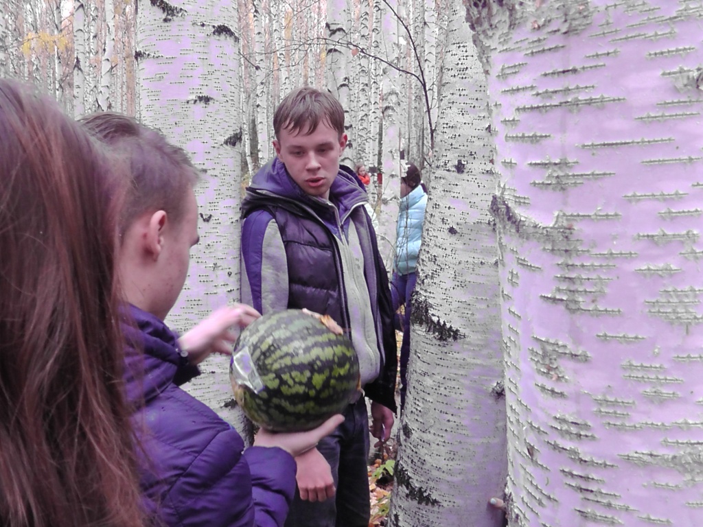 С пятым этапом первокурсники справились также замечательно: используя свой интеллектуальный потенциал они прошли по семи этапам, обнаружили все полуразмокшие записки с подсказками на территории базы и в результате нашли Клятву первокурсника, которая в этот раз пряталась в арбузе, затаившемся в березовой роще…