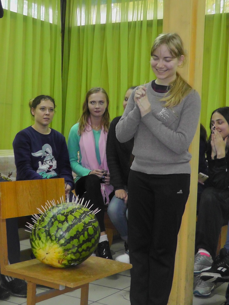 Помимо клятвы первокурсника, студенты произнесли еще и свои речи о себе, о том, что они ожидают от обучения, о той атмосфере, в которой им предстоит учиться… По сложившейся традиции, доставая зубочистки из «ежика-арбуза», студенты старших курсов, а также педагоги, пожелали новоиспеченным студентам обрести на факультете и в вузе не только большой и полезный багаж знаний, но и опыт творческого общения.